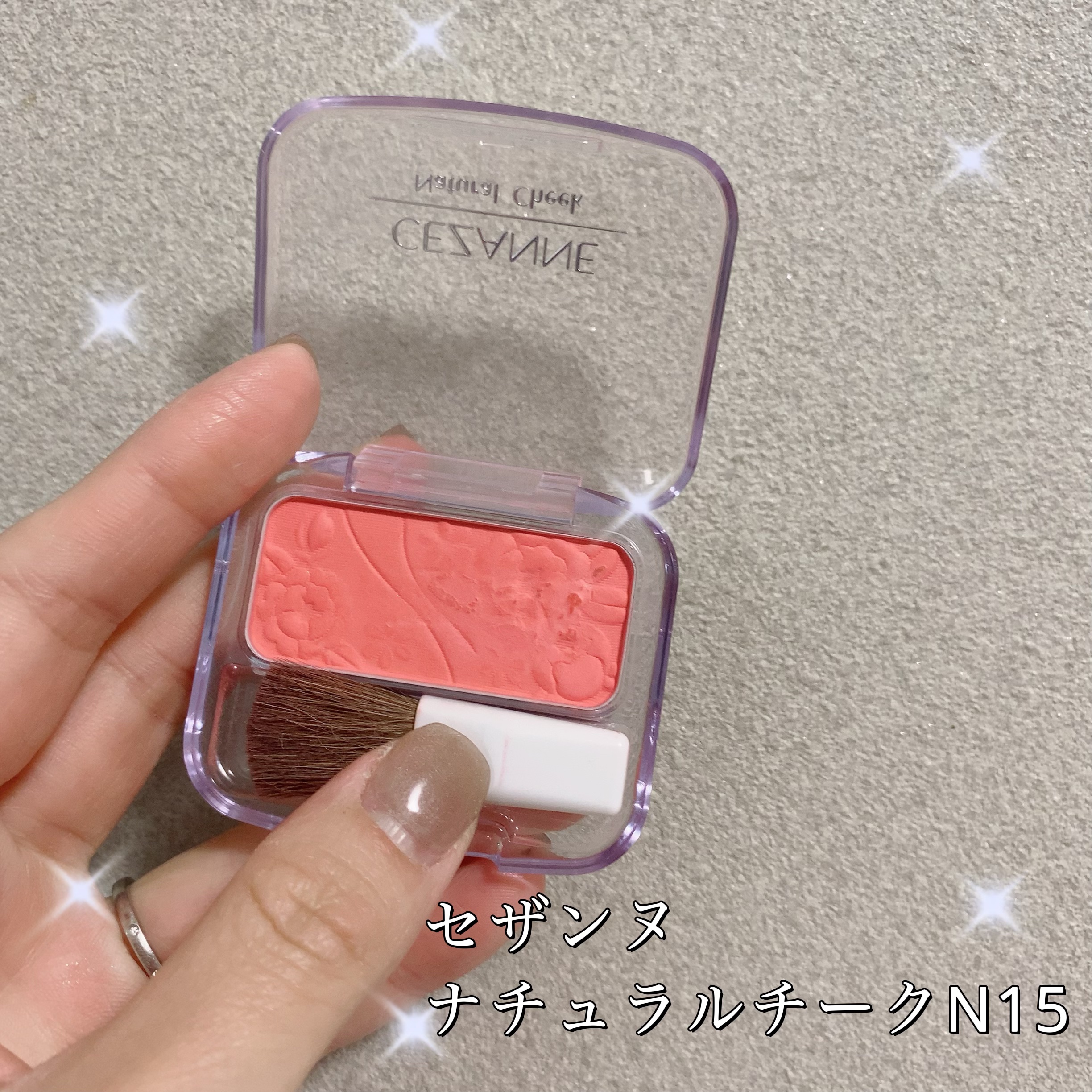 少し遅いですが、セザンヌのナチュラルチークN15のクリアレッドです!パッケージがシンプルで可愛いですよね💕発色は名前の通りナチュラルで3枚目の写真は付属のブラシで4、5回重ねてます。レッドだけどピンクっぽいなと思います。ブラシはチクチクしなく...