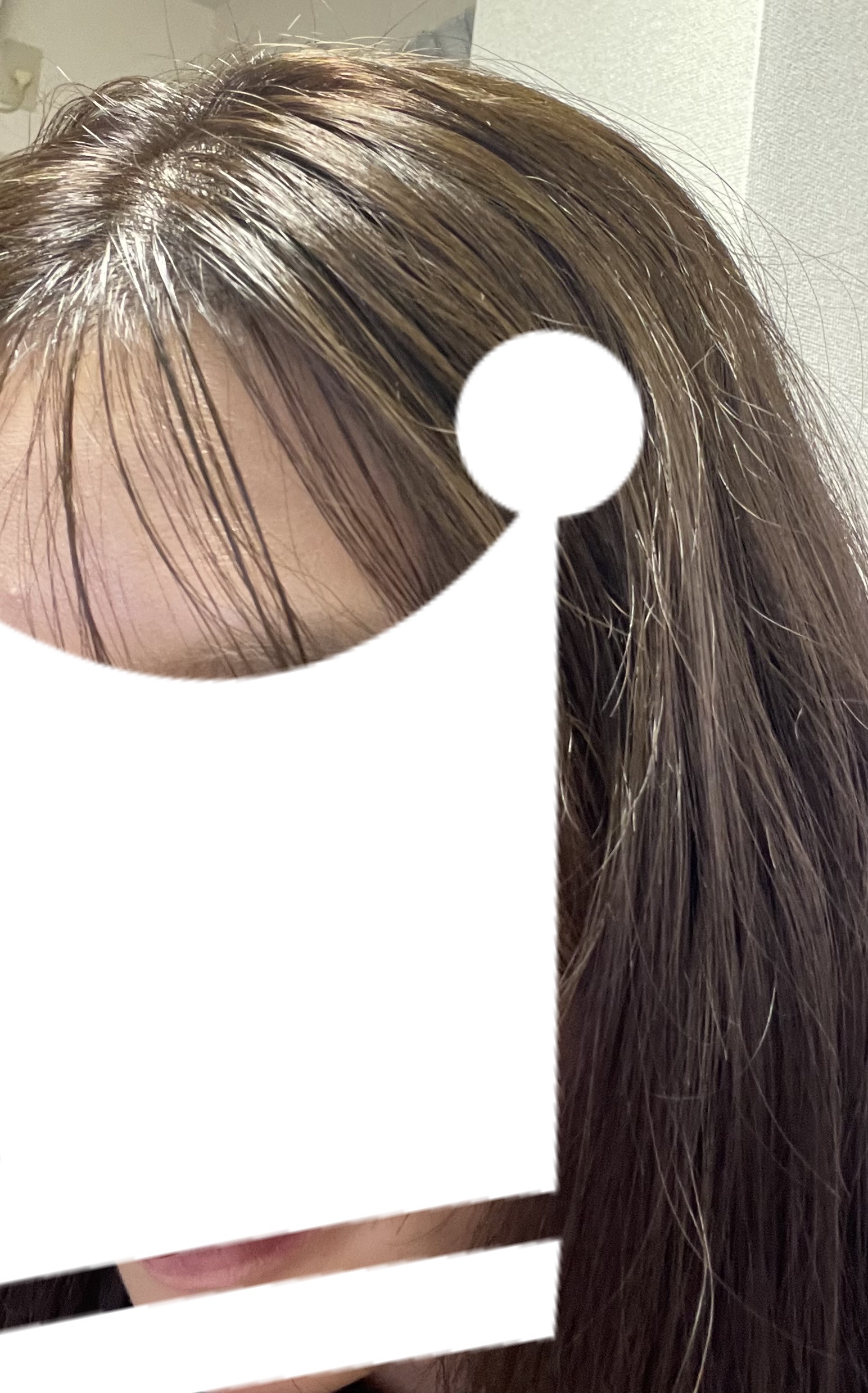 #リーゼ#泡カラー#ダークショコラ加工してません。背景が、部屋が丸見えのため、映えを一切気にせず、白塗りしました笑😆泡カラーのダークショコラで、染めました。ロイヤルブラウンのリピート率が多いですが、ダークショコラは2回目です。プリン🍮がセルフでも、キレイに染まってくれました。ムラなく、キレイに染まってくれます。抜けが少し早い気もしますが、2ヶ月は抜けても変な色抜けしませんし、安いのであまりきにしてないです。お仕事で明るいカラーできない方にもオススメです。美容室行かなくても、セルフで、時短と節約ができるので、コロナ禍をきっかけにセルフカラーによりハマりました。#美髪のキホンは頭皮から#セルフカラー