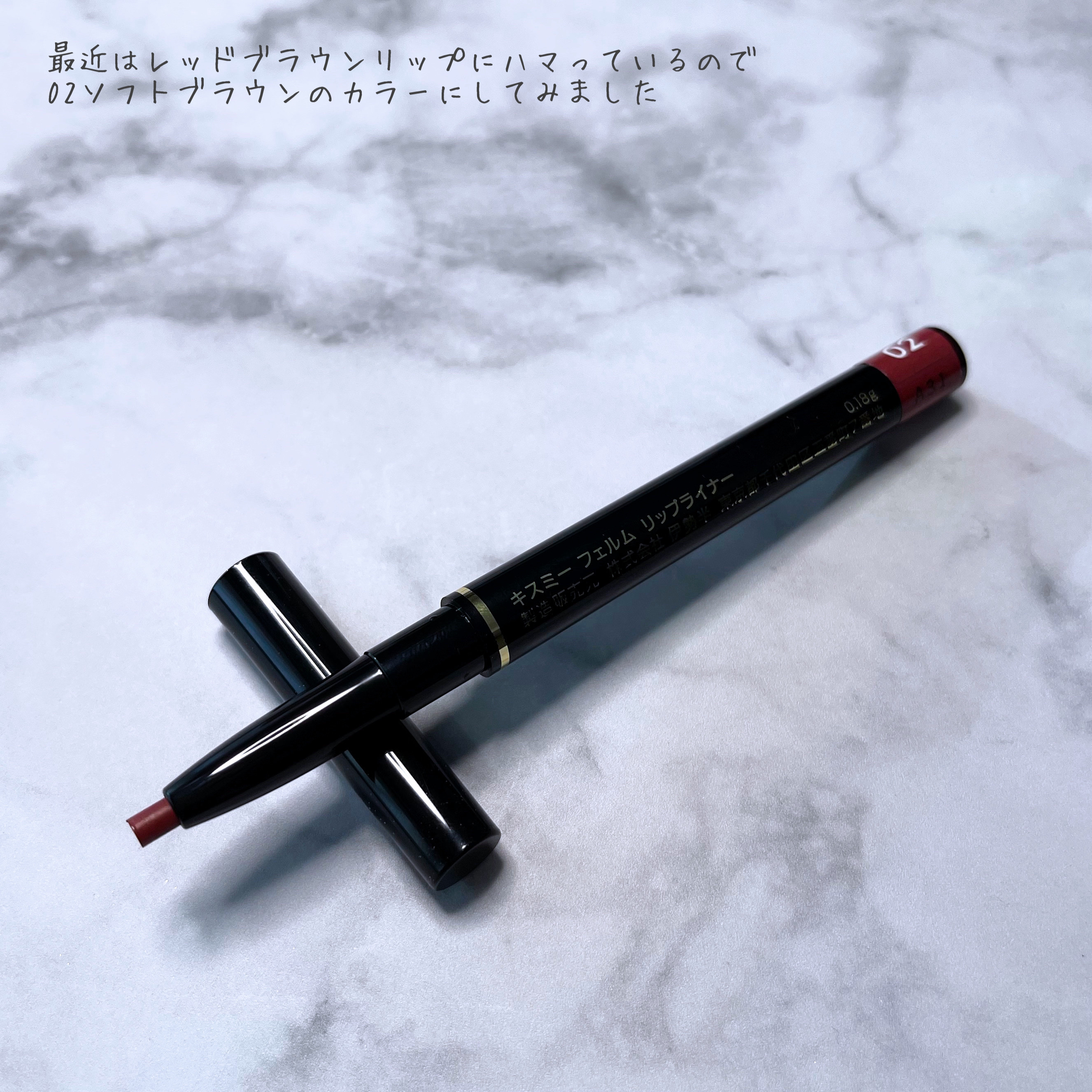キスミーフェルム リップライナーみなさん、おはようございます😊今回は、キスミーフェルム リップライナー02 ソフトブラウンを紹介します。最近、よく使うリップライナーです。落ちにくく描きやすいです。#キスミーフェルム#リップライナー...