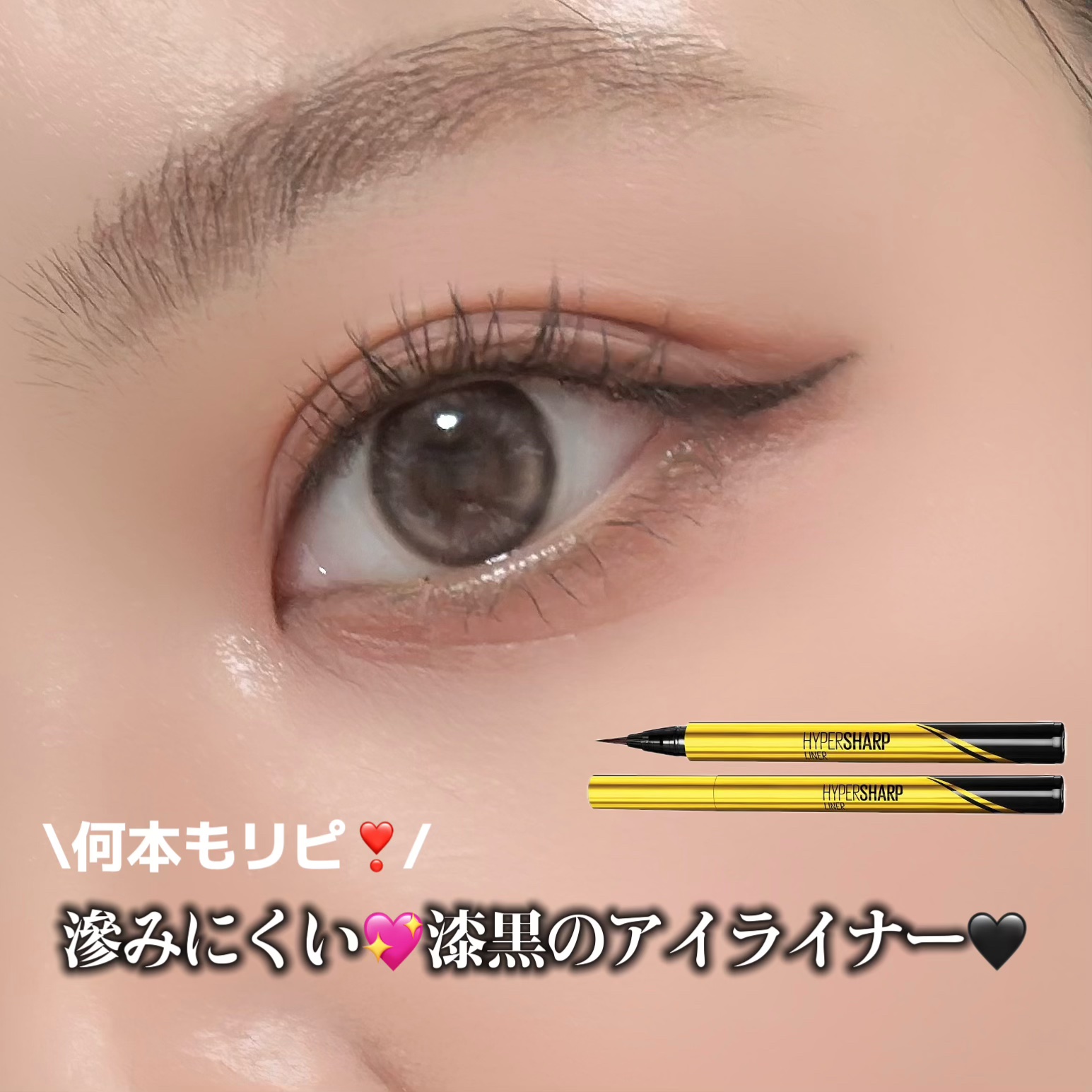 *プチプラのリキッドアイライナーと言えばKateのにハマっていたけど最近は、もっぱらメイベリンニューヨーク@maybellineのハイパーシャープライナーばかり使っています✨極細0.01mmとかなりほそいのに手ブレ吸収ブラシ採用しているからほ...