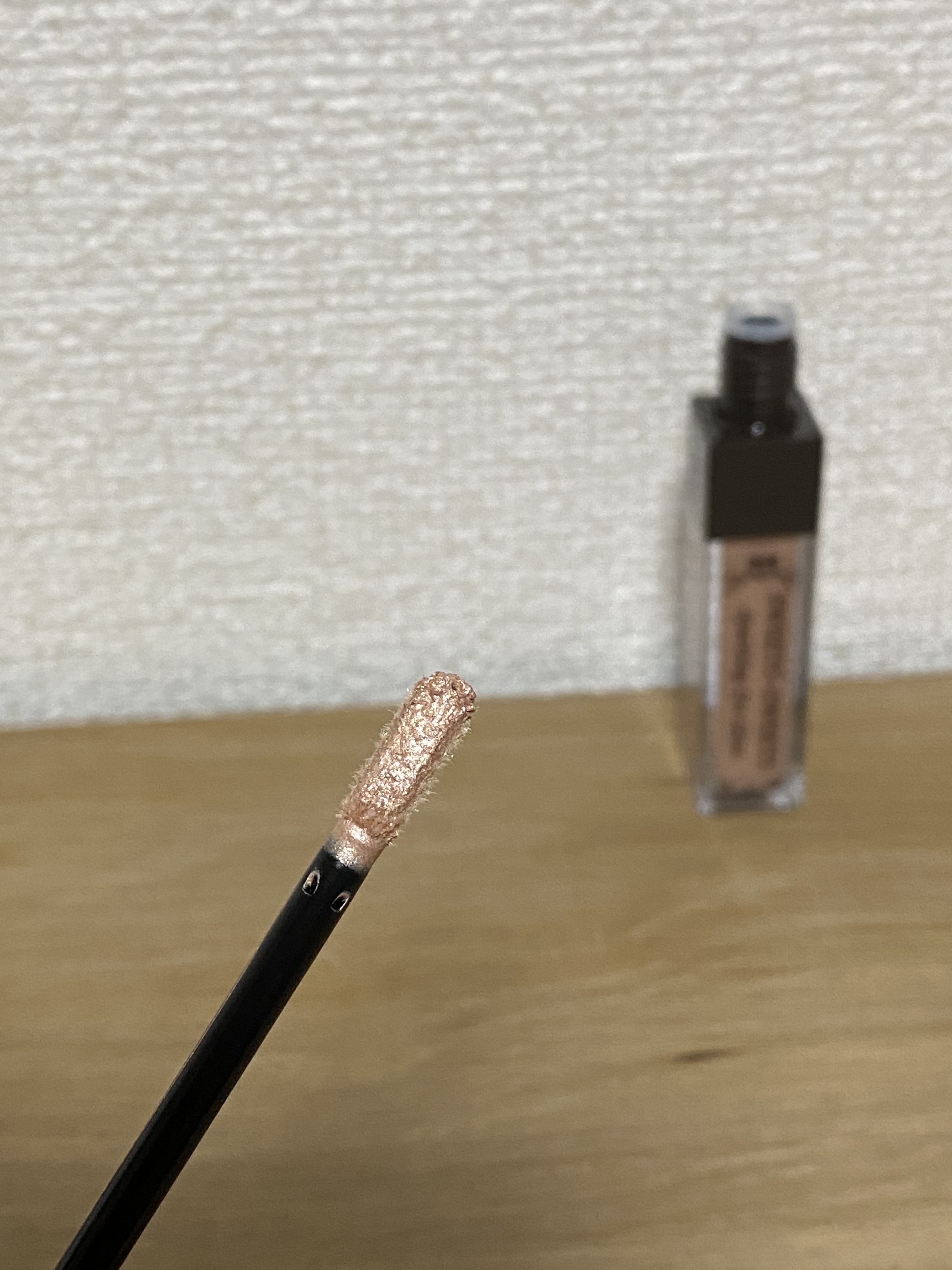 柔らかいテクスチャーで、先端はヘラタイプで塗りやすくて重宝しています。 パウダーシャドーの上から乗せるとヨレちゃうので、私は単色使いかこの上にパウダーシャドーを乗せます。 グリッターラメがスゴいですよ! 下まぶた使いもありです。 こちらを塗って締め色で完成も良き😊 リピしまくりです❣️