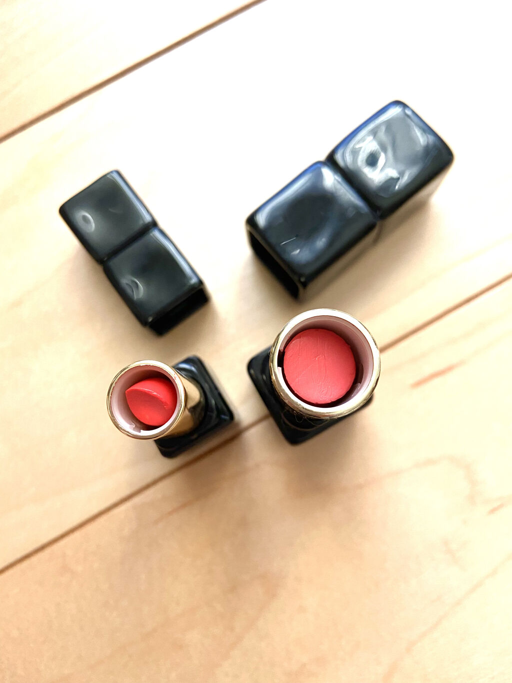 ジルスチュアートのリップは色味自体は鮮やかですがシアーなので意外とつけやすく、 ツヤ感のある発色がみずみずしい印象を与える唇にしてくれます💋 Diorのリップは発色や色の落ち方がとてもきれいで、 デパコスリップとして1本は持っておきたいブランドだと思っています✨ 999Sは最近のトレンドのくすみや粘膜系とは程遠い色ですが、 Diorならではの鮮烈な朱赤がとっても印象的です! ゲランのキスキスはゲランリップの中ではリップケアに着目したラインで、 ツヤ感と色持ちの両立ができる一本です💖 可愛らしいコーラルピンクはまさに春らしい色味なので、 リップはポイントメイクの中でお手軽にカラーチェンジできるパーツですので、 ぜひ春を取り入れてみてください❣️