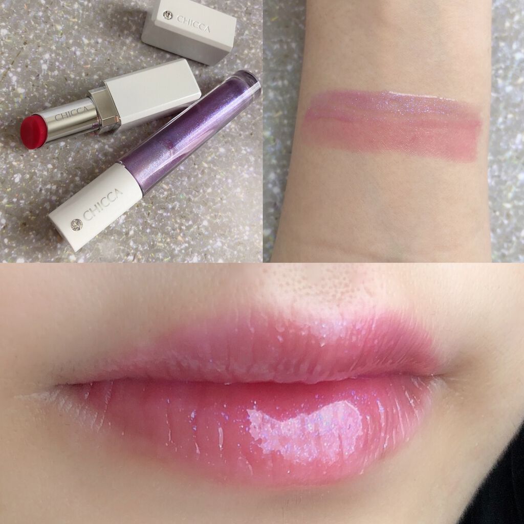 🌸CHICCA🌸MESMERICLIPSTICK31ムーンファイアーMESMERICGLASSLIPOIL05ミーミーミー♡︎ʾʾ久しぶりにCHICCAの登場☺️❤️CHICCAはクルエルティーフリーではないのでやや使うのを躊躇しちゃいますが…なんだかんだめっちゃ好きなんですよねぇ😅そもそもブランド自体が消滅してるから手持ちを愛でるしかないですしね。ストック含めて使ってない手持ちが大量なので久しぶりに引っ張り出しました👍今回使用したのはメスメリックリップスティックの31番ムーンファイアーとメスメリックグラスリップオイルの05番ミーミーミーです(⑅˘͈ᵕ˘͈)どちらの色番もパソカラ的にブライトサマーの自分に最適カラー✨まずメスメリックリップスティックの31番ムーンファイアー。見た目ははっきりとしたレッドだけど実際に塗ってみるとクリアなレッドピンクっぽい感じかな?CHICCAは2/5発色が特徴的でどの色番でも違和感なく使えますが、やはりパソカラぴったりなカラーだと顔色が綺麗に見えるなと実感。私はやっぱりクリア系のほどよくはっきりしたカラーが得意かもしれない🤔このカラーはばっちりでした👍✨お次はメスメリックグラスリップオイルの05番ミーミーミー。一見ギョッとするようなパープルグロスです😅しかし唇にのせるとベースカラーはそれほど主張せず、ラメとツヤのいいとこだけ上乗せしてくれる感じ(˶ˆ꒳ˆ˵)ピンク、ブルー、パープル優位の多色ラメがもうたまりません😍✨ムーンファイアーだけでもほんのり色づくピュアな感じが可愛いけど、ミーミーミーを足すと青みとラメ、立体感が出てまた違った魅力があるかなと💡なかなかリップ消費できてませんが新しいのもやっぱ欲しいのでちょこちょこ使っていきたいと思います♪お読み頂きありがとうございました😊✨#chicca#胸キュンコスメ