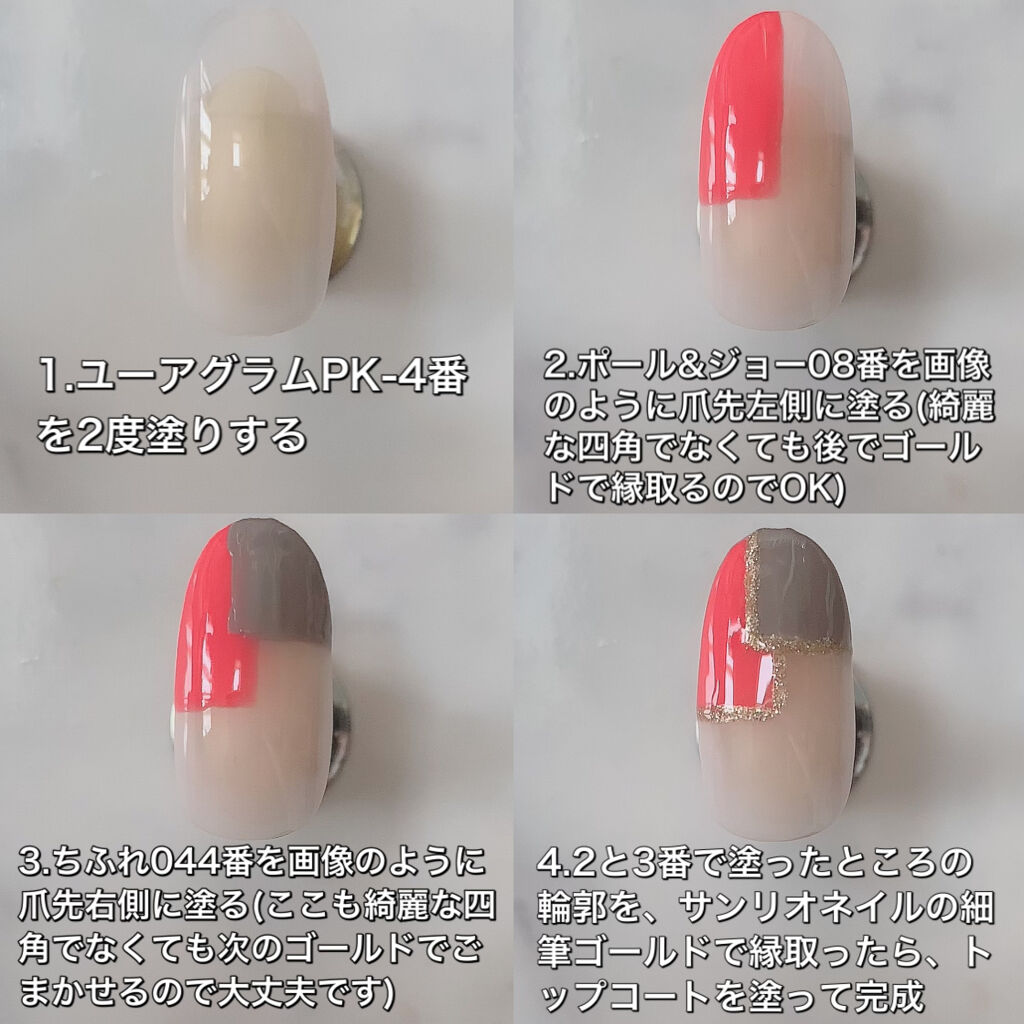 鮮やかピンクもグレーと合わせて甘さ控えめに♡こちらはネイルが上手なcocoちゃんの投稿を参考にしました💓ビビッドピンクとクールなグレーを合わせたデザインが新鮮で素敵だったので、私も早速グレーと合わせてみました😆やり方は画像を参考にしていただければと思います♪親指と中指は、ちふれ044番を2度塗りして根元にストーンをのせました。薬指は、ポール&ジョーの08番を2度塗りして、根元に以前セリアで購入したパーツをつけました。ブロックネイルにすることでよりクールな印象になり、ピンクの甘さも抑えられたかなと思います✨■思ったより発色が強かった…■塗ってみたらガーリーすぎた…などそんなピンクをお持ちの方は、是非試してみてください(*´꒳`*)cocoちゃんのレオパードと合わせたデザインも素敵なので参考にしてみてください❤️#セルフネイル#ブロックネイル