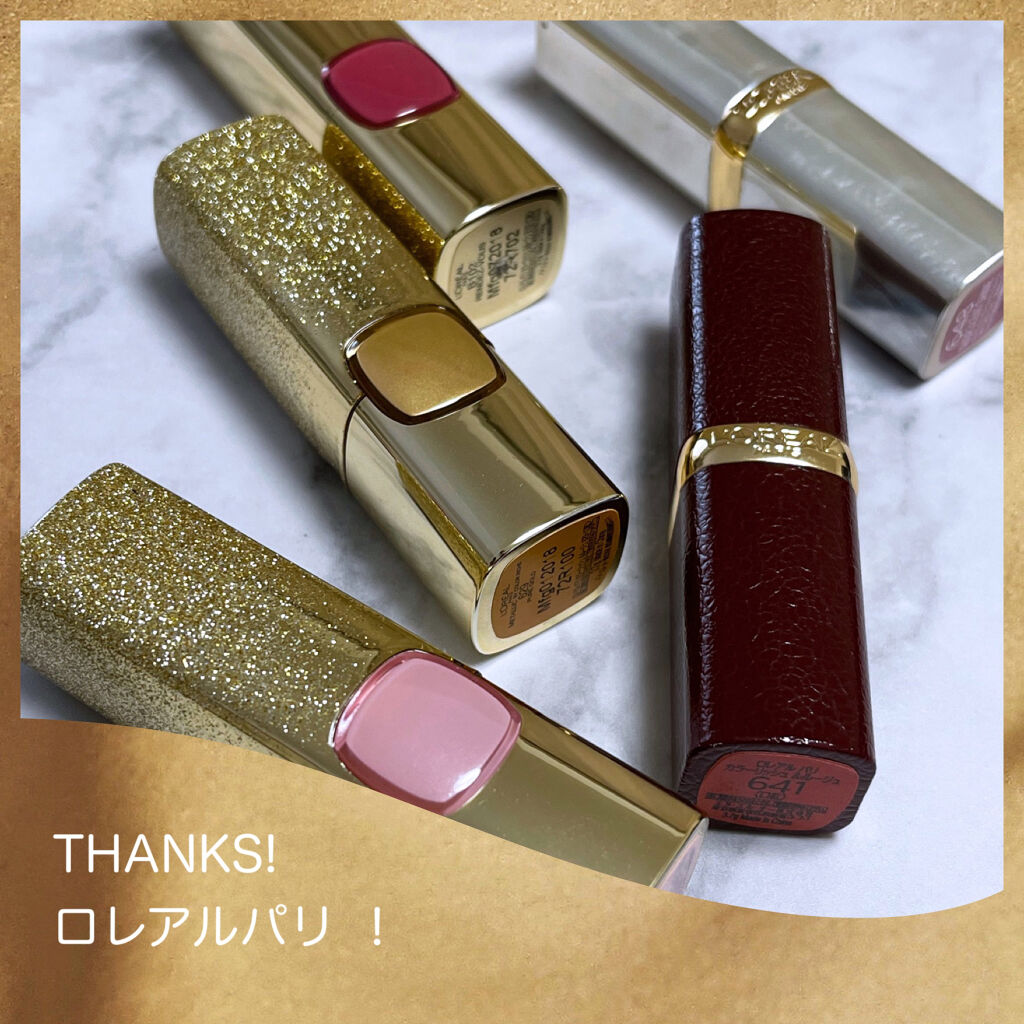 𓍯𓏲ロレアルパリ カラーリッシュルルージュ𓇬629ピュアゴールド𓇬631ローズシャンパン𓇬B102ランデヴー𓍯𓏲リュクスレザーコレクション𓇬641ジェイミーズドリーム𓍯𓏲ヌードナクレコレクション𓇬648イリデセントシャイン⑅︎∙︎˚┈︎┈︎┈︎┈︎┈︎┈︎┈︎┈︎┈︎┈︎┈︎┈︎˚∙︎⑅︎✩︎⡱ロレアルパリコスメ回顧録カラーリッシュルルージュのまとめ❤︎たまに発売されるオシャレなコレクションが好きだったカラーリッシュルルージュ💄スウォッチまとめて完成と思ったらあと1本出てきた( ゚Д゚)笑⑅︎∙︎˚┈︎┈︎┈︎┈︎┈︎┈︎┈︎┈︎┈︎┈︎┈︎┈︎˚∙︎⑅︎629ピュアゴールドと631ローズシャンパンは多色ラメがギラギラするド派手リップ⑅︎◡̈︎*どっちも単色で塗ると宇宙人👽ゴールドの方がより宇宙人👽他のリップと合わせて使うものですね😇B102ランデヴーは絶妙なプラムピンクのカラーが可愛い❤︎今回スウォッチしてシルバーパール入ってるの気付いた(*´∀︎`)ノ☆゚︎.+:。641ジェイミーズドリームはリュクスレザーコレクションシリーズの1本。とにかくレザーのパケが可愛かったので中身を吟味せずに買ってしまった。。もっと色味真剣に選べば良かった。。何で鬼門のテラコッタ選んだんだろう😇648イリデセントシャインはヌードナクレコレクションシリーズの1本。柔らかなローズピンクにこれでもかと青ラメが入ってる可愛すぎるリップ(*´꒳`*)これもパケが白蝶貝みたいで美しい🐚⑅︎∙︎˚┈︎┈︎┈︎┈︎┈︎┈︎┈︎┈︎┈︎┈︎┈︎┈︎˚∙︎⑅︎スウォッチしてたらくるみちゃん🐈にゴールドリップを床に落とされた。。。((((;゚Д゚)))))))床がゴールドリップ塗れに🤣リップはグチャグチャ😇お〜いやらかしてくれるなぁ。。でも可愛いから許すଘ(੭´・∀︎・`)੭近々あとの1本スウォッチしよう(*・ω・)…#まりかロレアルパリ