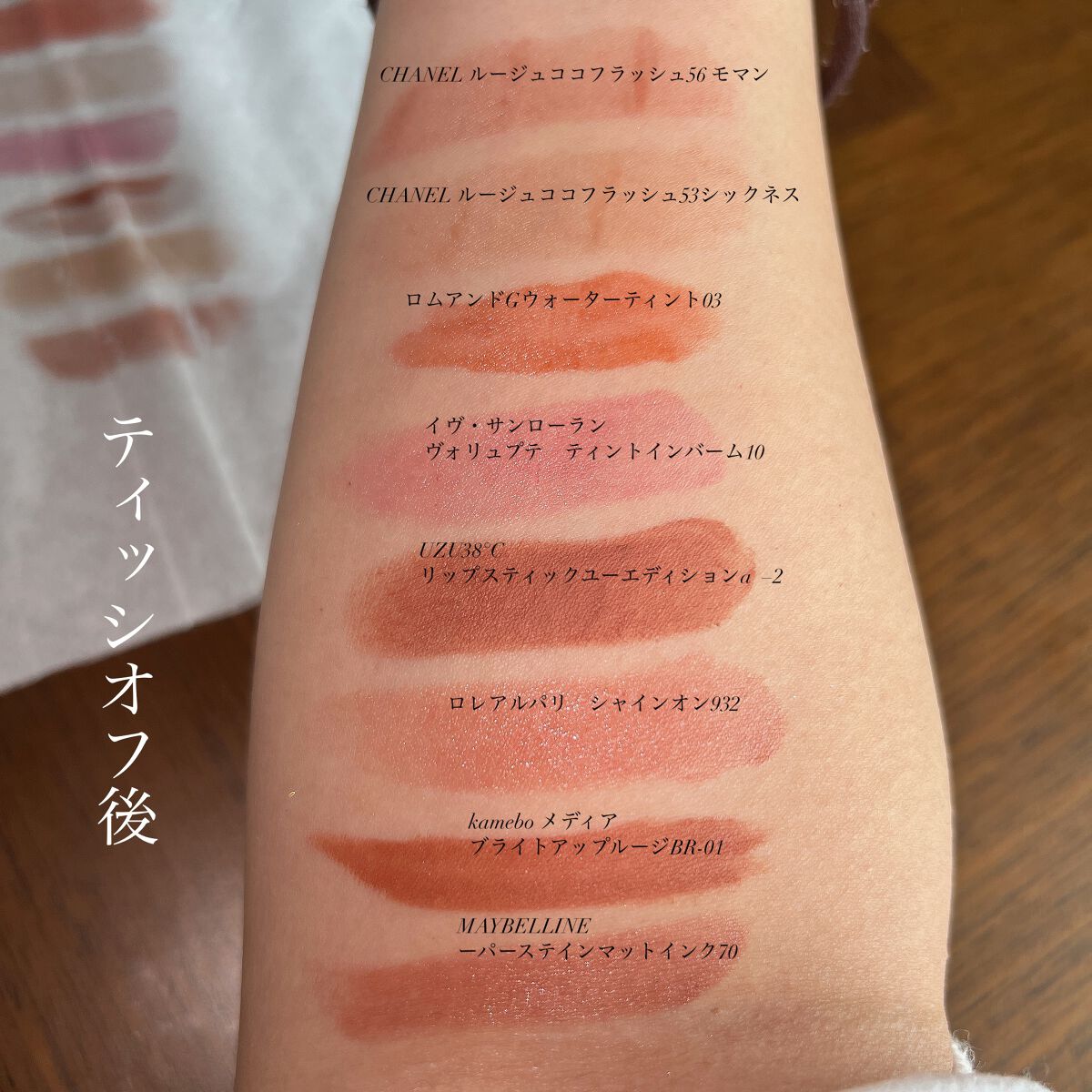 CHANELルージュ ココ フラッシュ56モマン CHANELルージュ ココ フラッシュ53シックネス YVES SAINT LAURENT BEAUTE ヴォリュプテ ティントインバームNo.10セドゥースミーピンク rom&ndグラスティングウォーターティント #03 ブリック リバー UZU BY FLOWFUSHI38℃/99℉ LIPSTICK <YOU>-2 ロレアル パリシャインオン932ビターネクター mediaブライトアップルージュBR-01 MAYBELLINE NEW YORKSPステイ マットインク70
