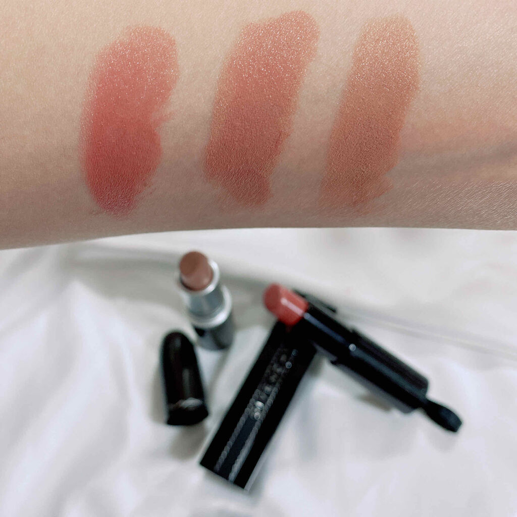 M・A・C「リップ」M・A・Cリップスティックシスもう何年か前から廃盤になってますが、大事に使ってます!リップメイクの幅が広がる、コンシーラー的な役割なリップです。重ね塗りとしても色が変化してくれるのでオススメ!これ一本だとかなりヌーディーなカラー私は、GIVENCHYのNo.5ヌード・イン・ダークとの重ね塗りが大のお気に入りでよくこの組み合わせで使ってます!!写真4枚目のカラーは左 GIVENCHYのみ中央 MAC+GIVENCHY右 MACのみ赤リップと合わせるとオレンジっぽいブラウンに変化するのも面白くてすき!シスと似たカラーでピーチストックもありますが、そっちのカラーもおすすめです!#MAC#リップスティック#シス#GIVENCHY#ルージュアンテルディ#ヌードインダーク#重ね塗りリップ#組み合わせリップ#リップコンシーラー#リップメイク#私のベストコスメ#ナナコスメ
