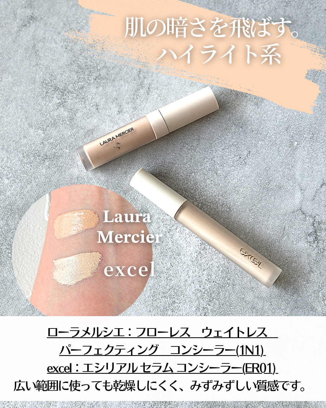 こんにちは。隠したいところだらけの中年です。良いコンシーラーの情報を知るとすぐ買ってしまうので、年々増えていきます。みんな違って、みんな良いんです。最近1番ヘビロテしているのはRMKです。超乾燥肌の私が目元に使ってもひび割れず、しかもよれにくくて、めちゃくちゃ優秀です。無くなったら絶対リピ買いすると決めています✨--------------------------#残暑を乗り切る鉄板ベース#コンシーラー#クマ隠し#シミ隠し#RMK#mac#CEZANNE#セザンヌ#excel#エクセル#Kanebo#カネボウ#ADDICTION#NARS