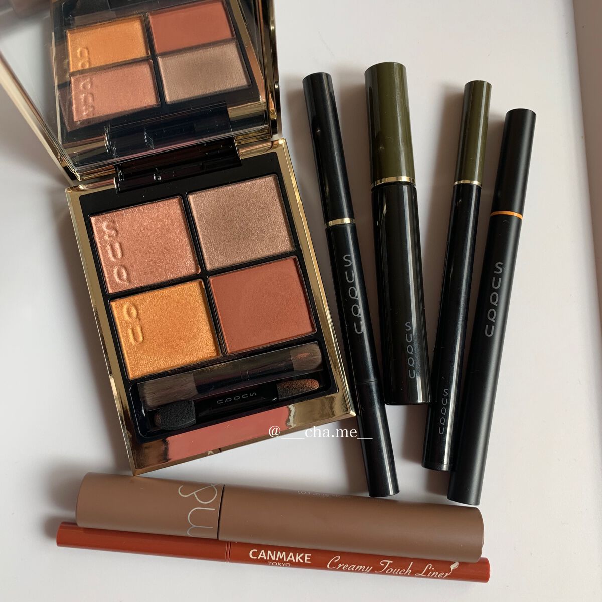 秋よ、はよ来い。/#SUQQU#シグニチャーカラーアイズ#シグニチャーカラーアイズ10#彩葉集-IROHAATSUME#フレーミングアイブロウリキッドペン01カーキ#ボリュームアイブロウマスカラ01カーキ#ソリッドアイブロウペンシル01カーキ#ニュアンスアイライナー#ニュアンスアイライナー105#サフランオレンジ┈┈┈┈┈┈┈┈┈┈howto(SUQQU公式推奨メイクver.3)①左下を目の際からアイホールまでグラデーションで入れる。②右下をまつ毛の間を埋めるように入れる。③左上を目頭を囲むように入れる。④右上を目の下全体に入れる。┈┈┈┈┈┈┈┈┈┈彩葉集、LOOK3🫶一緒に買ったニュアンスアイライナーのサフランオレンジをどうしても使いたくて上記の工程にプラスしてダブルライン的に引いてみたけど同系色中の同系色だわな、そりゃ😇まぁよくみたらダブルラインやん、ってわかるかわからんかくらいの自己満ラインになってますが大目に見てやってください(´°ᗜ°)ハハッ..かろうじて写ったから隠しようもなかった😇.眉毛をカーキにしてみたんですが、そもそも私の顔と今の髪色にカーキが似合わないんですね🫠でも似合う人やったら結構お洒落だろうなぁ〜と思いました。ちなみにSUQQUの眉アイテムは推せません!描きにくい。色はめっちゃいいのにな〜、ペンシルとリキッドは。しかしアイブロウマスカラの色、濃すぎるねんな〜(¯ᒡ̱¯)ブツブツ.見ていただき、ありがとうございました︎💕︎#ちゃめすっく#夏コスメの戦利品