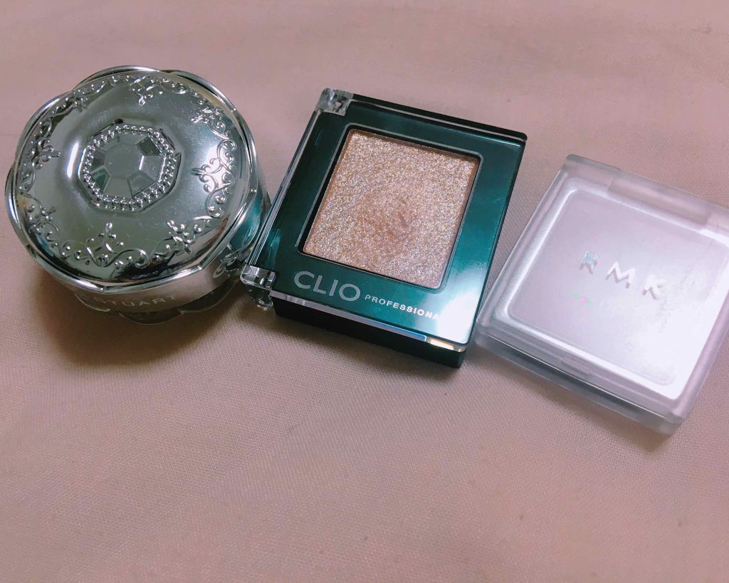 こんにちは!今回はキラキラアイシャドウの比較をしていきたいと思います🤞・JILLSTUARTジェリーアイカラー03→水が入ったようなアイシャドウで、触るとプニプニしています!最初塗ってみるとムラになりやすいかな?って思いますが乾いて密着してそこから取れなくなります!二重幅に溜まったことはないです👌瞼に塗るとそこまでブラウンさが出ないのでよくアイシャドウベースとして使っています🙆♀️難点なのは下まぶたに塗りにくいところとリキッドなので劣化が早いところかな〜と思います☹️・クリオプロSシャドウG10→去年にとても流行ったアイシャドウです😂少しとっただけでこの発色…さすがクリオ😂粉飛びもないしアイシャドウベースを塗らなくても落ちないです!涙袋に塗るとうるうるした目元に見えます!韓国コスメで新大久保に行ったり、ネットでしか購入できないのは残念ですが買う価値はあると思います👌・RMKグロージェル01→今年の冬?春?に限定で発売されたものです😂青みピンクがキラキラと光って可愛いです!あとBAさん曰くオイルが入ってるみたいで肌なじみがいいみたいです👌難点はケースが開けにくくてアイシャドウがすぐ壊れてしまうところと結構取らないと発色しないところです…でも1度発色すればずっと残ってくれるのでそこはいいです👌