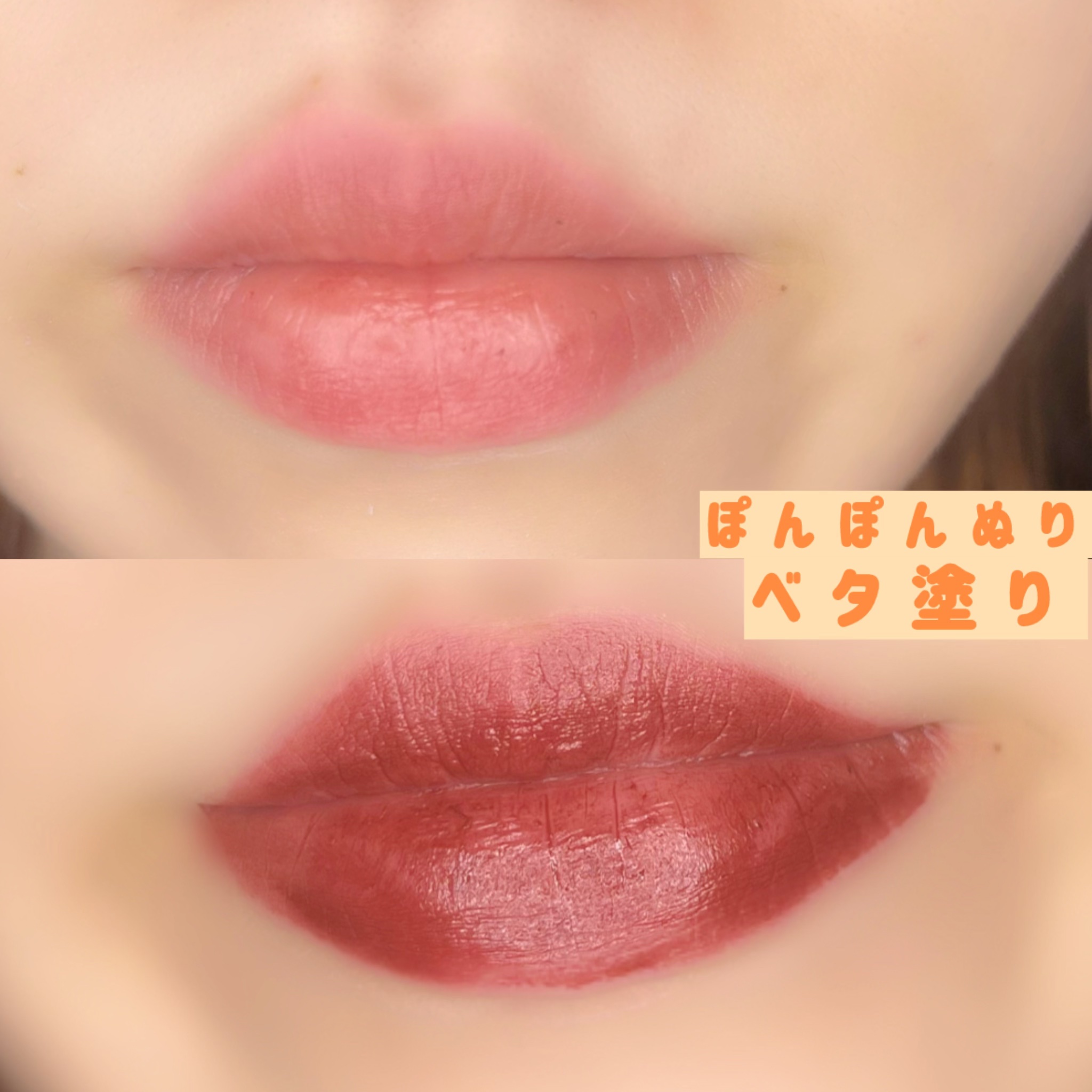 こちらはイガリさんイチオシのカラーで、塗ると顔のくすみだったり、気になる部分をリップのカラーでとばしてしまう超優秀なカラーなんです❣️ 私、ブラウンのリップが大好きで、なんかメイクがしまらないな、というときに使っています💖 プチプラでこんなにこっくりしたカラーのブラウンリップはあまりないかも?