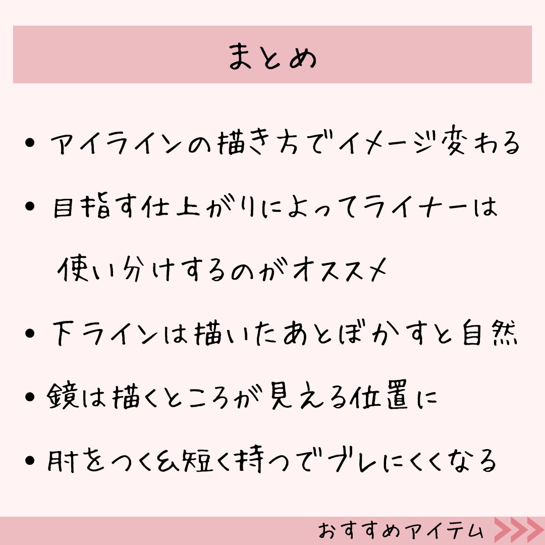 ペンシルライナーの描き方まとめたよ! ちょっとしたコツで失敗しにくくなる💡 苦手な人はチェックしてみてね😍 やってみてうまくいかないとか、わからないとかあったら個別にお答えしてるよ📣