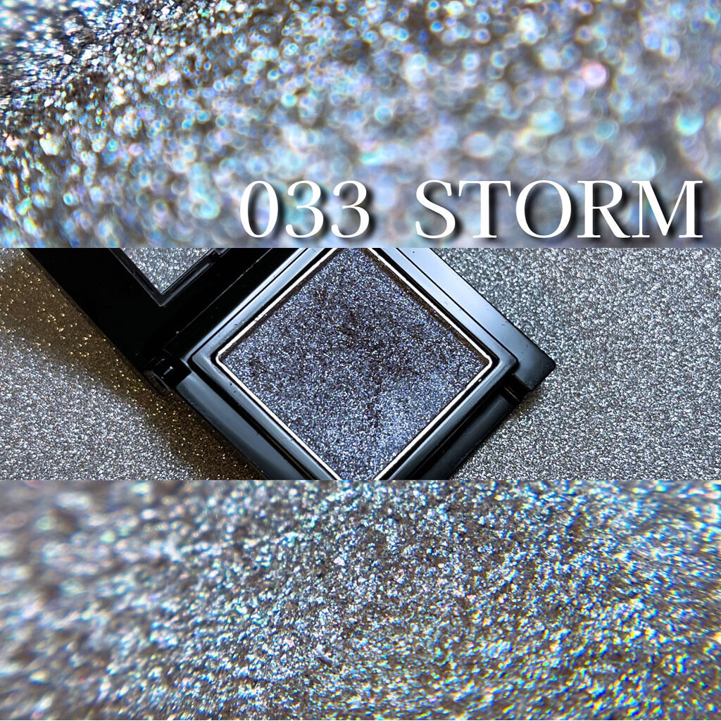 さまざまな質感や輝きで、単色でも組み合わせてもなりたい目もとに仕上がるアイカラー ひと塗りでしっかり発色、印象的な目もとを叶える 033のSTORMは大胆に煌くディープレディッシュグレー。 グレーの地にシルバーのラメがキラキラ✨️ 忙しい日は薄めにブラシに乗せて、これ1色でアイメイクを完成させています。 簡単にメイクしてます感が出せて時短に😁