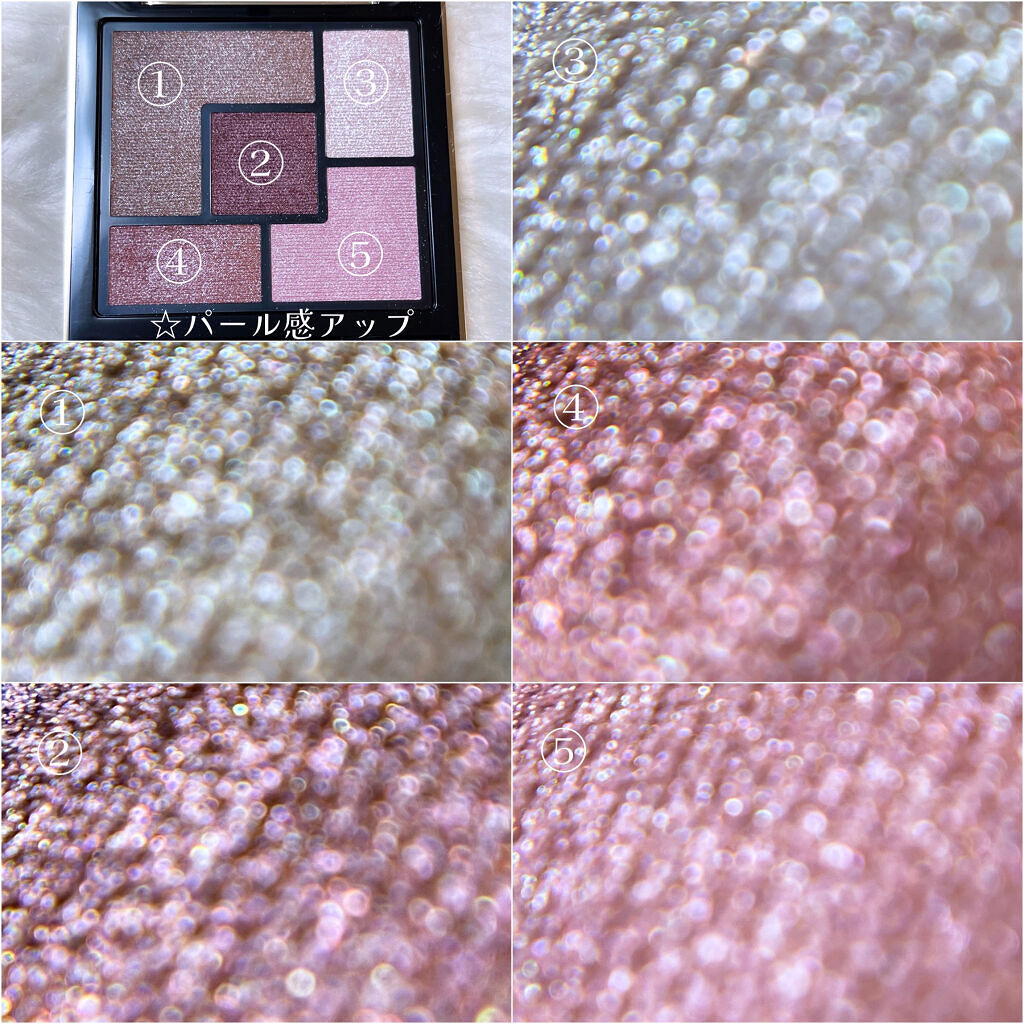 これは誕生日に貰った物の1つで、とても気に入って使っています♪ピンク系メイク、今特に好きでどの色も使いやすく頻繁に使って楽しんでいます♪質感も良く、ラメも細かいので私くらいの年齢でも気後れ無く使えテンションも上がるのでこれからも出番多そうです...