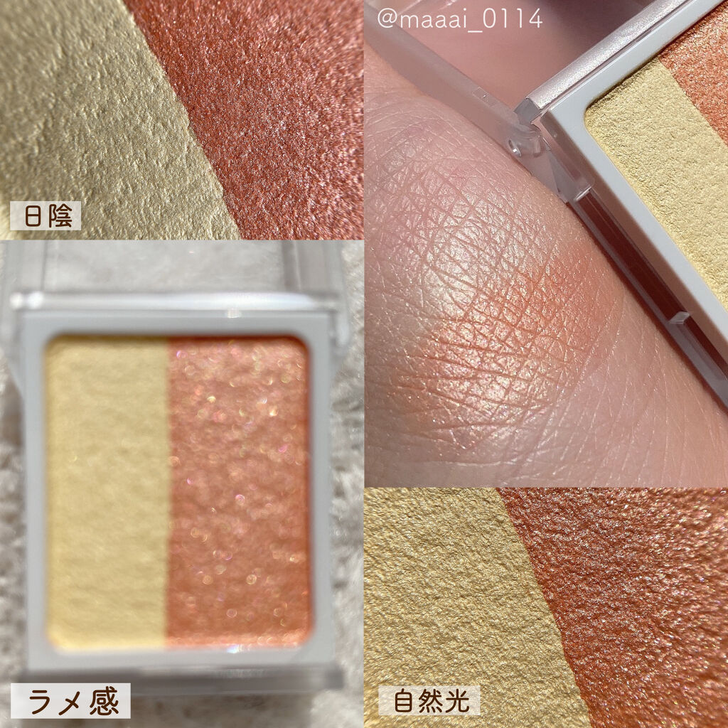 4色タイプはプラムとオレンジブラウン。2色タイプはボルドー×ブラウンとイエロー×オレンジ。どれも程よいラメ感が好きです。今度、無印良品のメイクパレットのMサイズでオリジナルメイクパレット作ってみようと思います!...