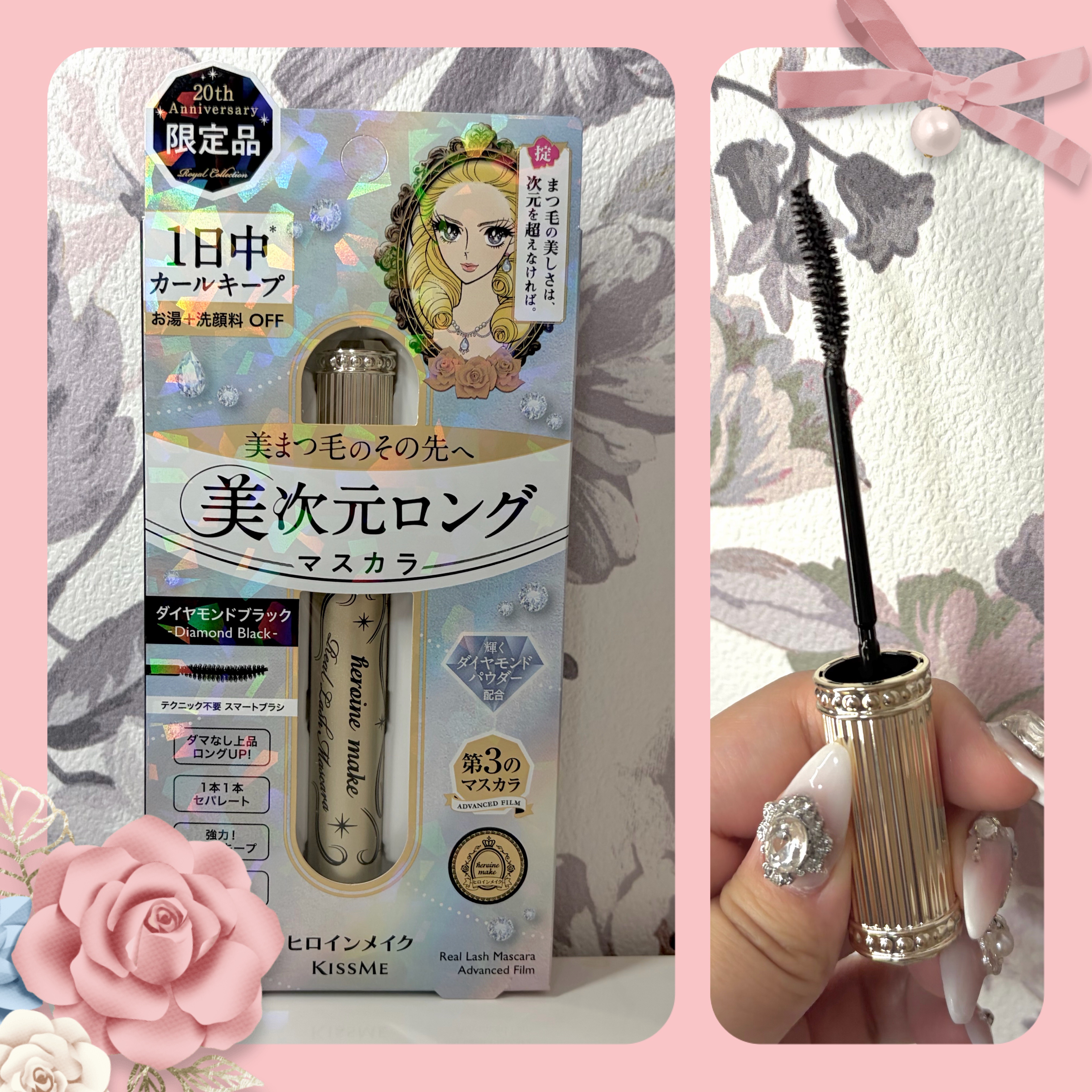 ヒロインメイクリアルラッシュマスカラ20周年限定品パッケージ金ピカでかわいいし、本当にマツエク並みにめちゃくちゃ伸びる😆🩷高校生の時からヒロインメイクのマスカラ持ってたので、気づいたらもう干支回っててびっくり‼️🫢これからも愛用します♪(*゚▽゚*)💛🫧(笑)