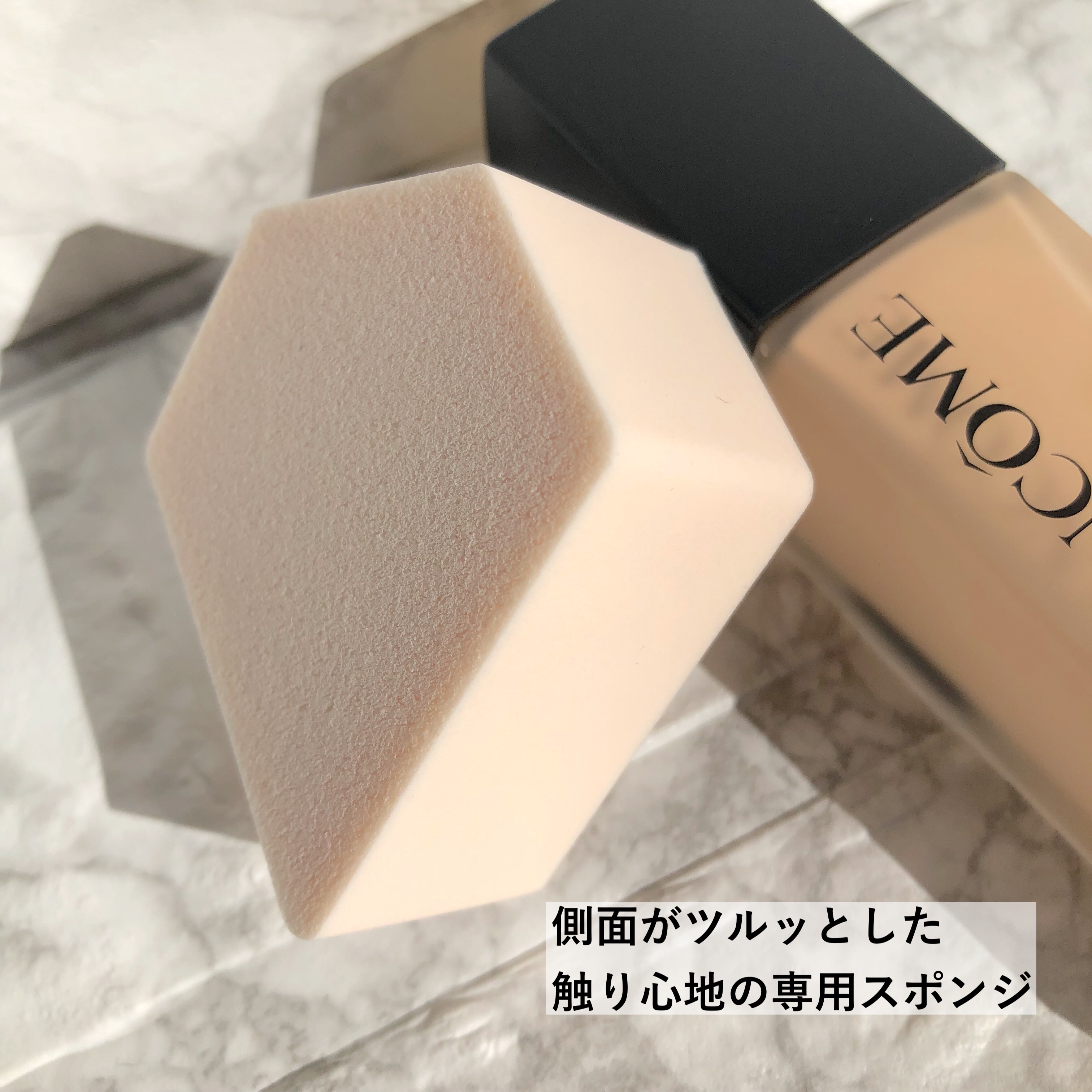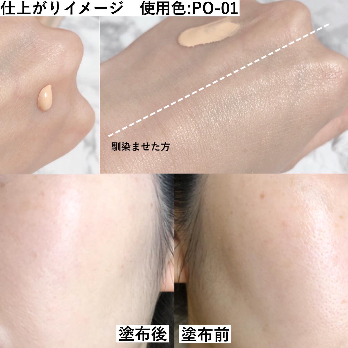 しっかりと肌に密着してくれ、適度なセミツヤ〜セミマット肌にしてくれます。 これからの季節に重宝したい適度な質感です。 ファンデーションを使うと毛穴落ちしたりなんとなくパサついて粉っぽい、ファンデーションの違和感を感じることが多いですが、このファンデーションはあまりそういうマイナス面が少ないです。 ただ、あくまで薄づきに塗らないとカバー力がそこそこあるので粉っぽさや塗ってる感はでるかな?と思います。 崩れ方も綺麗でさすがランコムと言わざるを得ません。 PO-01を購入しましたが、思ったより黄み寄りだったので大丈夫かな?と心配しましたが肌馴染みが良く浮いた感じはしませんでした。