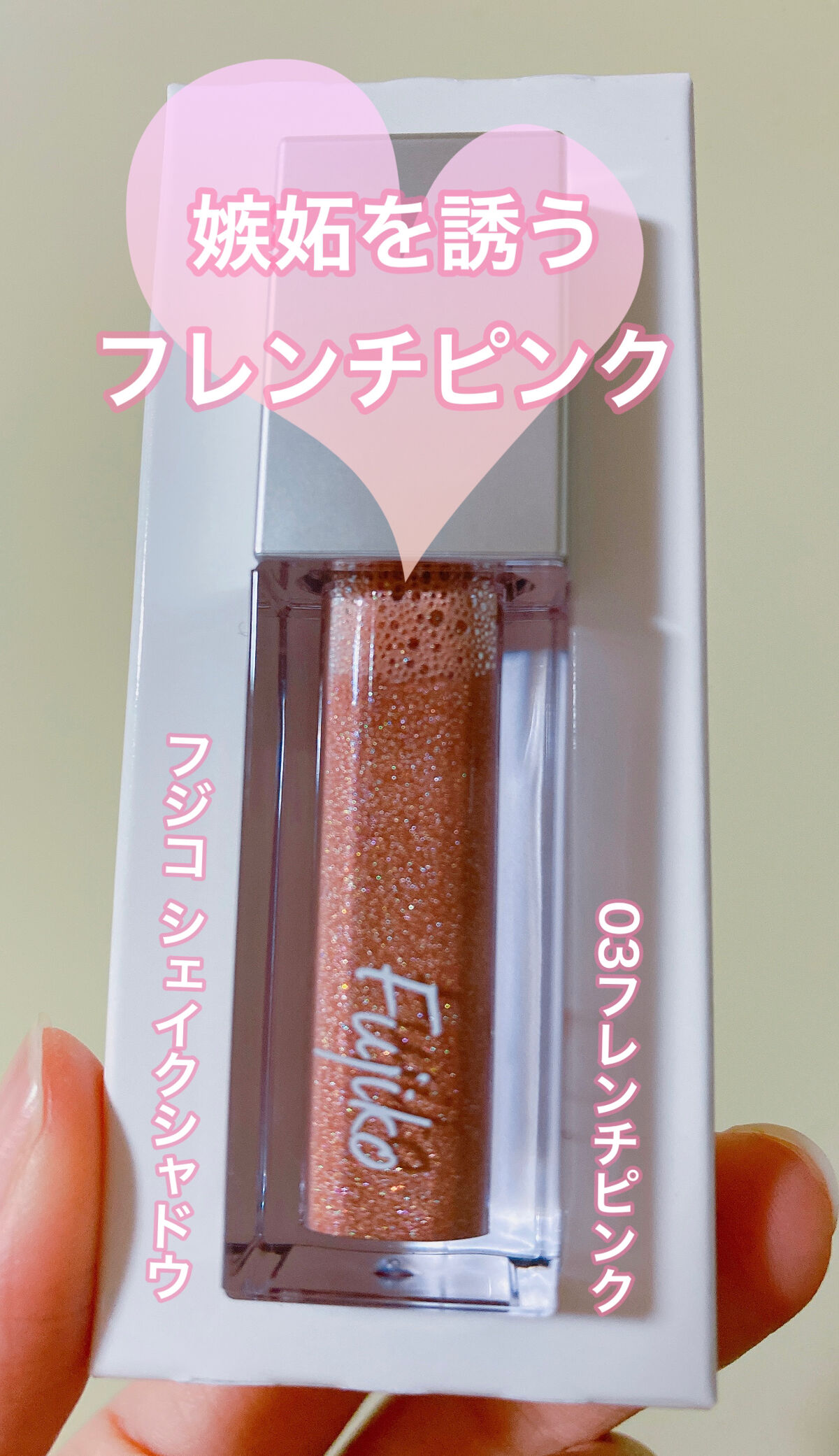 ずっと使いたかったFujikoさんのシェイクシャドウ、購入しました💕.油分ゼロ、水だけだからすごく軽い✨.まぶたにのせた途端、即乾で1日落ちることがなかったです。.03フレンチピンクはピンクベージュ色で、色はほとんど出ないのでオフィス向き。....