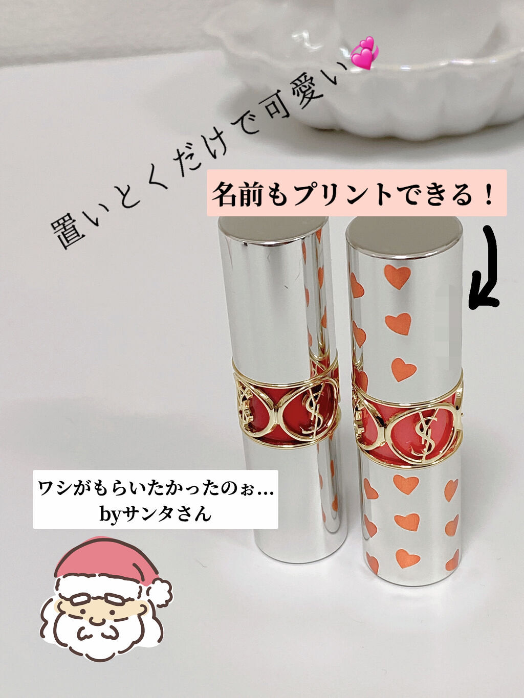 YVESSAINTLAURENTのリップで冬の恋が叶う?!/こんばんは!めるしー🤍です!この度名前とアイコンを変えまして、元hana♡maruだったのを「めるしー🤍」と言う名前にしました!引き続き見て頂けると嬉しいです😊ということで今日は!#YVESSAINTLAURENTBEAUTE#ヴォリュプテプランプインカラー#4#エクスポージングコーラル税込4730円をご紹介します!このリップは元々8色あったのですが(うち限定2色)、今はオンラインでも店頭でも色のバリエーションが減ってきているリップです🥲💦なのでもうすぐ廃盤になるのかなあと勝手に思い込み、元々6番のルナティックレッドを持っていたので、今回は4番のエクスポージングコーラルを購入。いざ、塗ってみるととってもかわいいコーラル🧡ベージュにもよらずピンクにもよらずオレンジ味のあるコーラルだったのでとってもかわいいなぁと思いました🍑😳色も可愛いのに、開けたときのリップのマークがハートなのもポイント高すぎて女子力上がりますよね💞プランパーリップなので少しピリピリします!ピリピリするのが苦手な方には向いていないです😅真ん中のハートは、ペパーミントオイルとメンソール配合のため清涼感を感じることができます✨また、乾燥しにくく艶感もあるのでツヤリップが好きな方にもオススメしたいです🥰💕このご時世気になる色持ちですが、少しはマスクにつきますが、普通のリップよりも断然落ちにくいです!トータルで星5のリップでした🤗⭐︎⭐︎⭐︎⭐︎⭐︎で!!ここからはイヴサンローランさんの表参道ヒルズ店についてお話ししたいと思います❤️興味のある方はぜひ最後まで見てください!デザインは全て無料で出来ます🧡🍑まず、自分がどのリップを選ぶかを決めます!デザインできるリップは、(私が知ってる限り)・ルージュヴォリュプテシャイン・ヴォリュプテプランプインカラー・ルージュピュールクチュール?←ちょいあやふやになります!!⚠️ルージュヴォリュプテロックシャインはデザインがプリントできないとのこと💦そして、リップが決まったら次はデザインをタブレットで決めます!模様は、ハートや星、唇マークや和柄などの面白い模様も多数ありました🤗また模様の大きさなども変えられます!そして模様の色なども選べるんです❤️🧡💖🖤今回のリップがオレンジぽかったので、ハート模様の色もオレンジにしてみました!リップの表面の加工も、艶々にするかマット加工にするか選べました!でも店員さんが言うには、マット加工だとプリントがはげやすいとの事だったので艶々にしました🙌😌そして最後に、名前もプリントできるので自分の名前を入れました!刻印というのもできるのですが、ハートや星などの模様が入れられなくなってしまうとの事だったので今回は名前はプリントにしました🥲😅それらを全て選んで、後は番号札を受け取って他のところに行ってる間に30分もたたない位でリップを受け取ることができます☺️🥰プレゼントであれば、プレゼントボックスは有料になりますがとっても可愛いのでぜひお勧めしたいです!ラッピングのテープの色がオレンジやピンクなどの色から選べて、メッセージカードまでいろいろな種類から選べるのでテンション上がりました🥰😍🥳クリスマスはもう終わってしまいましたが、誕生日プレゼントなどのイベントにとっても喜ばれそうですね💖💖💖ぜひ皆さんも機会があれば表参道ヒルズ店のイヴ・サンローランさんに足を運んでみて下さい🤗✨ということで以上になります🧡何か質問ございましたらコメント受け付けております‼️最後まで見ていただきありがとうございました❣️次のレビューもよろしくお願いします🤲ではではマタネ(^ω^)#プランパー#ハートリップ#可愛いリップ#コーラルリップ#うるつやリップ#デパコスリップ#保湿リップ