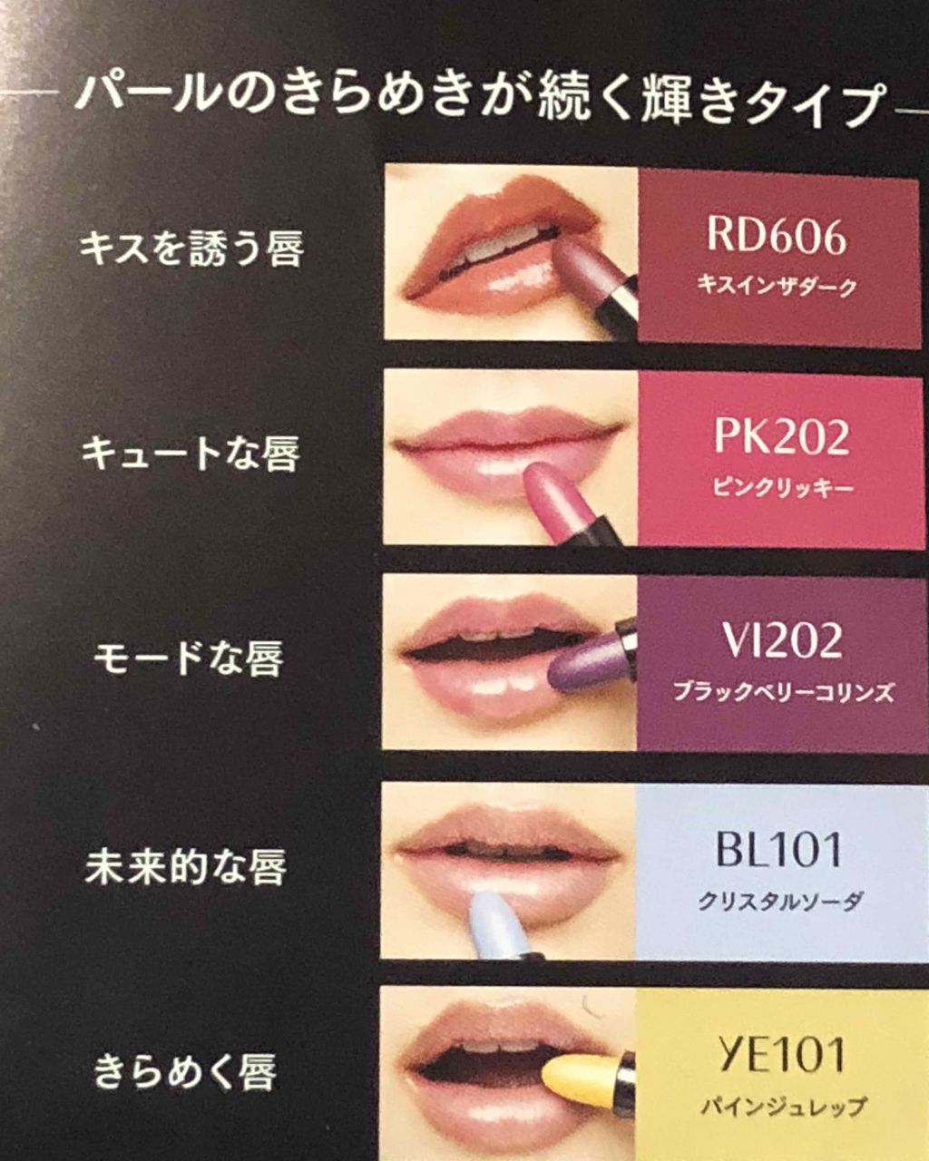 マキアージュ ルージュミニBL101 クリスタルソーダVI202 ブラックベリーコリンズRS404 カシスフラッペPK202 ピンクリッキー上二つはカラーチェンジ用という感じでそれだけでは色付きません下二つが普通のカラーですねとりあえずブルー...