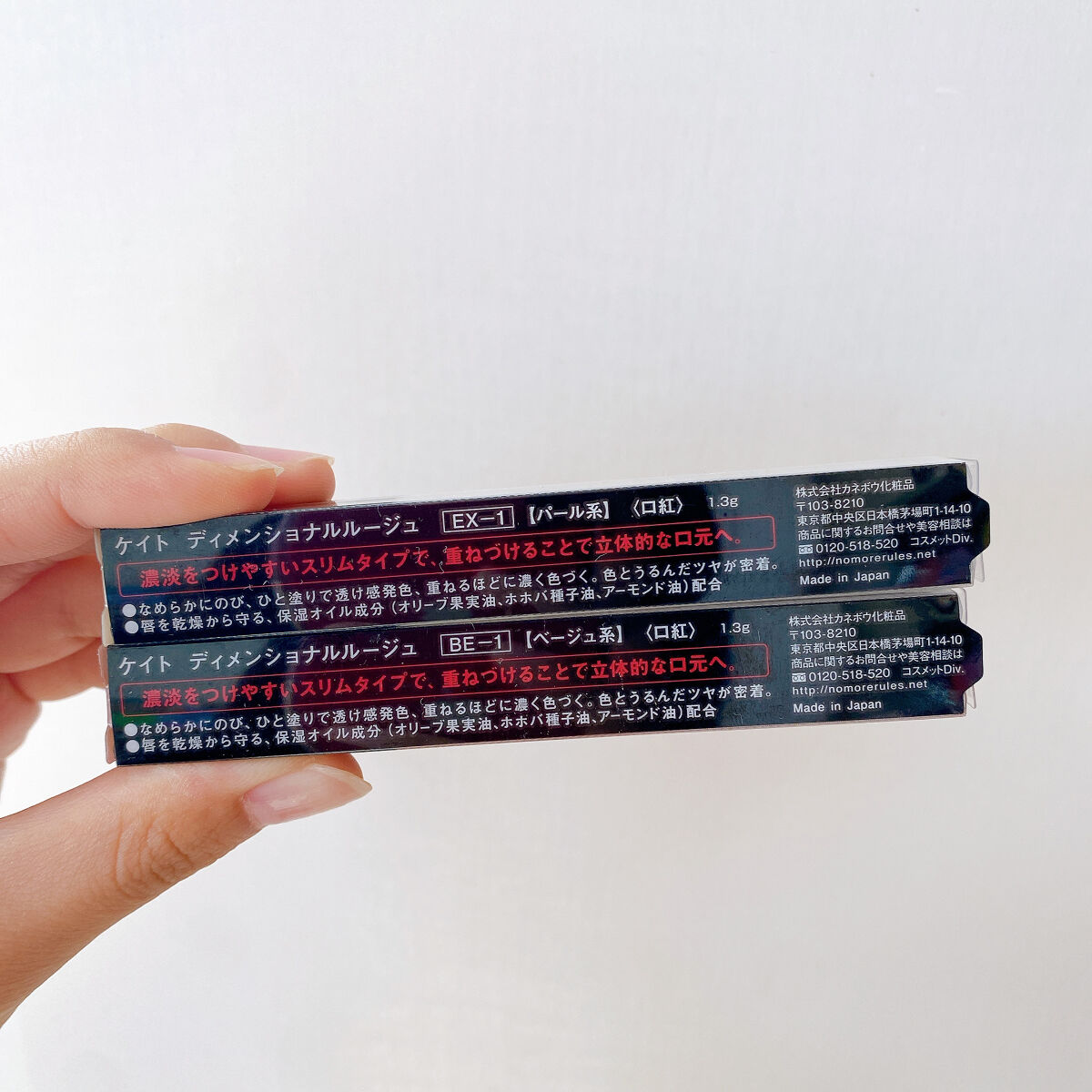 KATEディメンショナルルージュ/BE-1EX-1リップモンスターからKATEのリップに惚れたので他のタイプの使いやすそうなカラーも✨濃淡をつけやすいスリムタイプで重ねづけることで立体的な口元へなめらかにのび、ひと塗りで透け感発色重ねるほどに濃く色づく色とうるんだツヤが密着唇を乾燥から守る 保湿オイル成分オリーブ果実油 ホホバ種子油 アーモンド油 配合#KATE#ディメンショナルルージュ