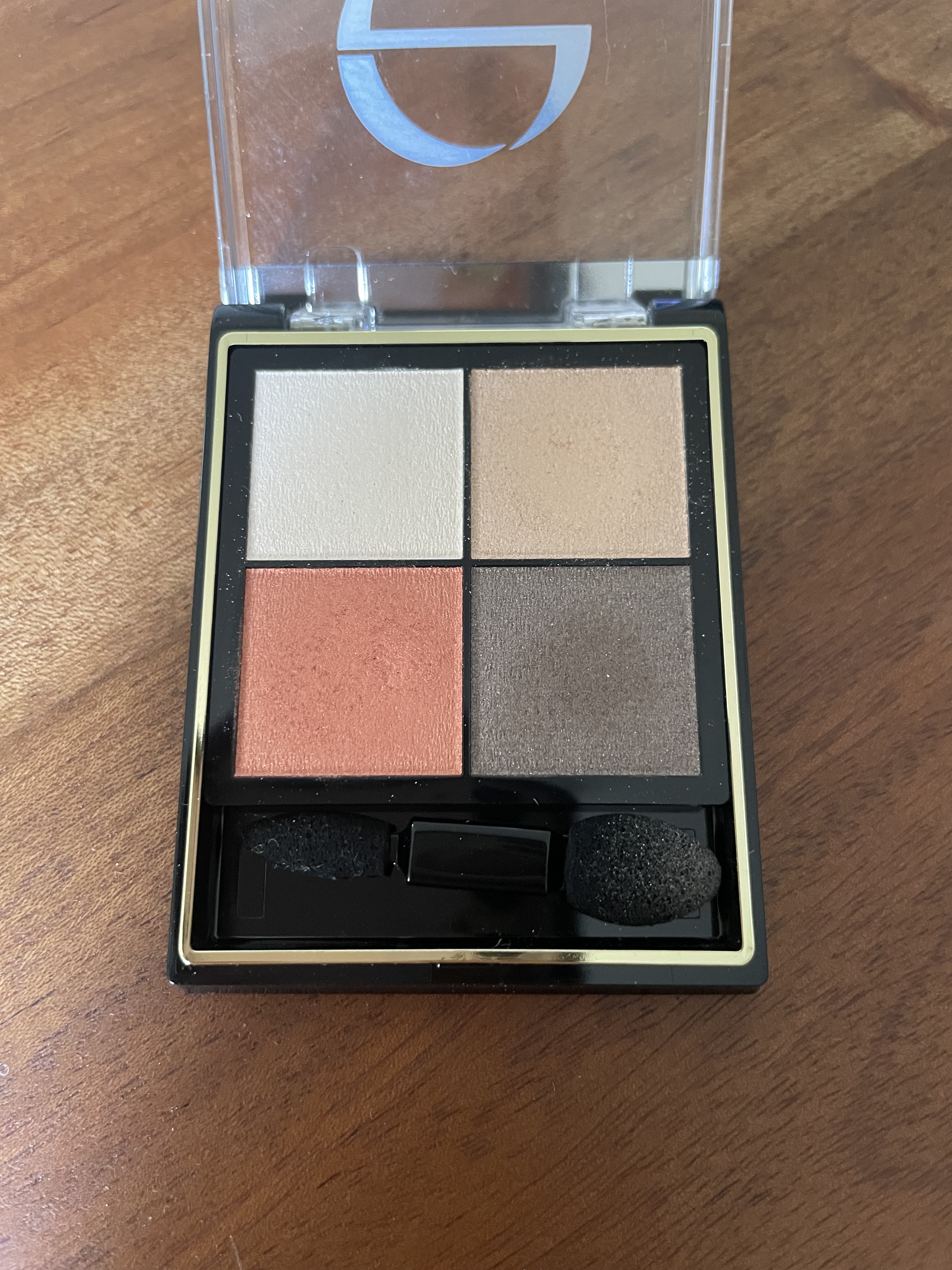 エクセルCS01テラコッタブーティー粉飛びはするけど、発色が良くて好き!4色中2色しか使わないのに、なぜかこのパレット買ったんだけど、右下の黒っぽい色は時々アイライナーに使ってたよ。発色するアイシャドウ好きさんに♡