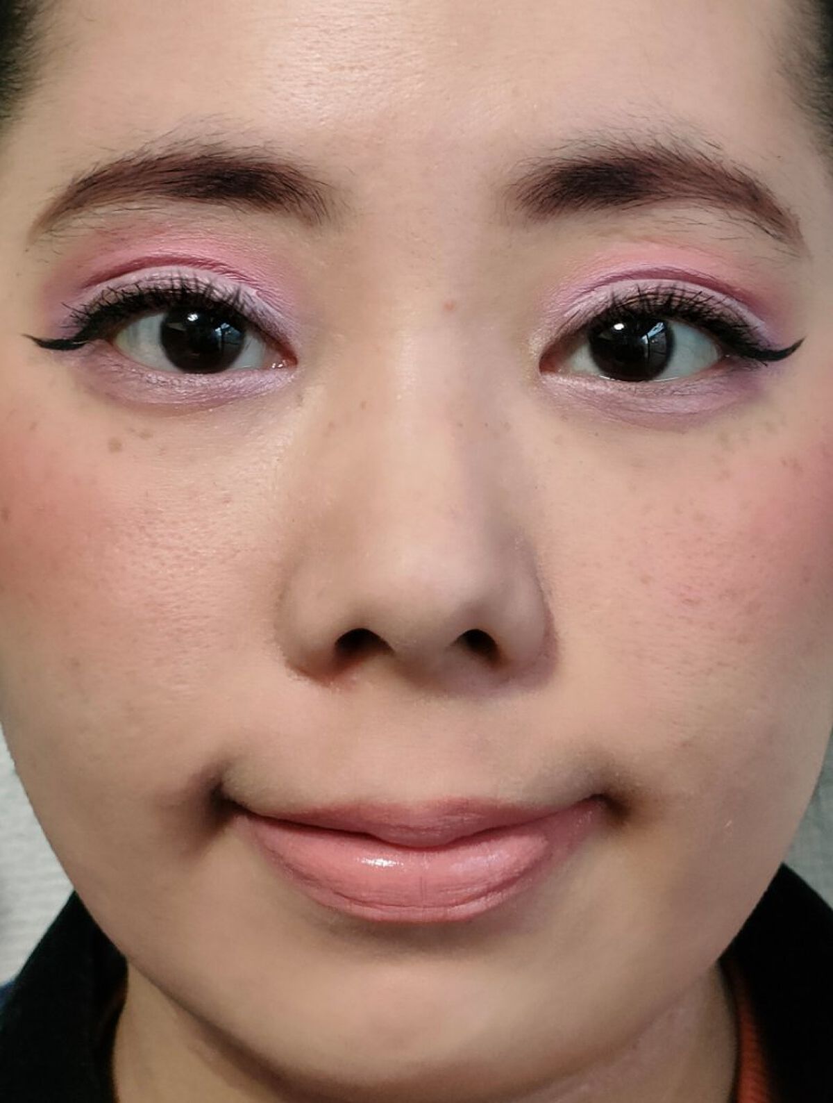 CEZANNE 皮脂テカリ防止下地 保湿タイプ オレンジベージュを、顔全体にまんべんなく塗ります。 PAUL & JOE BEAUTE モイスチュアライジング ファンデーション プライマー 02を、顔全体にまんべんなく塗ります。 REVLON スキンライト プレスト パウダーを、顔全体にまんべんなく軽くはたきます。 KATE チークカラーNを、両頬に塗ります。 CEZANNE ノーズ&アイブロウパウダー 01 キャメルを、眉毛全体にまんべんなく塗ります。 CEZANNE トーンアップアイシャドウ 10 ベリーブラウンを、使用します。 ちふれ リキッド アイライナー 筆ペンタイプ BK30 ブラックを、塗ります。 KATE ラッシュマキシマイザーHPを、まつ毛全体にまんべんなく塗ります。 ラブフロー スクラビングブラッシュマスカラを、まつ毛全体にまんべんなく塗ります。 ETUDE エチュアネット クリスタルシャイン リップ PBE101を、唇全体にまんべんなく塗ります。