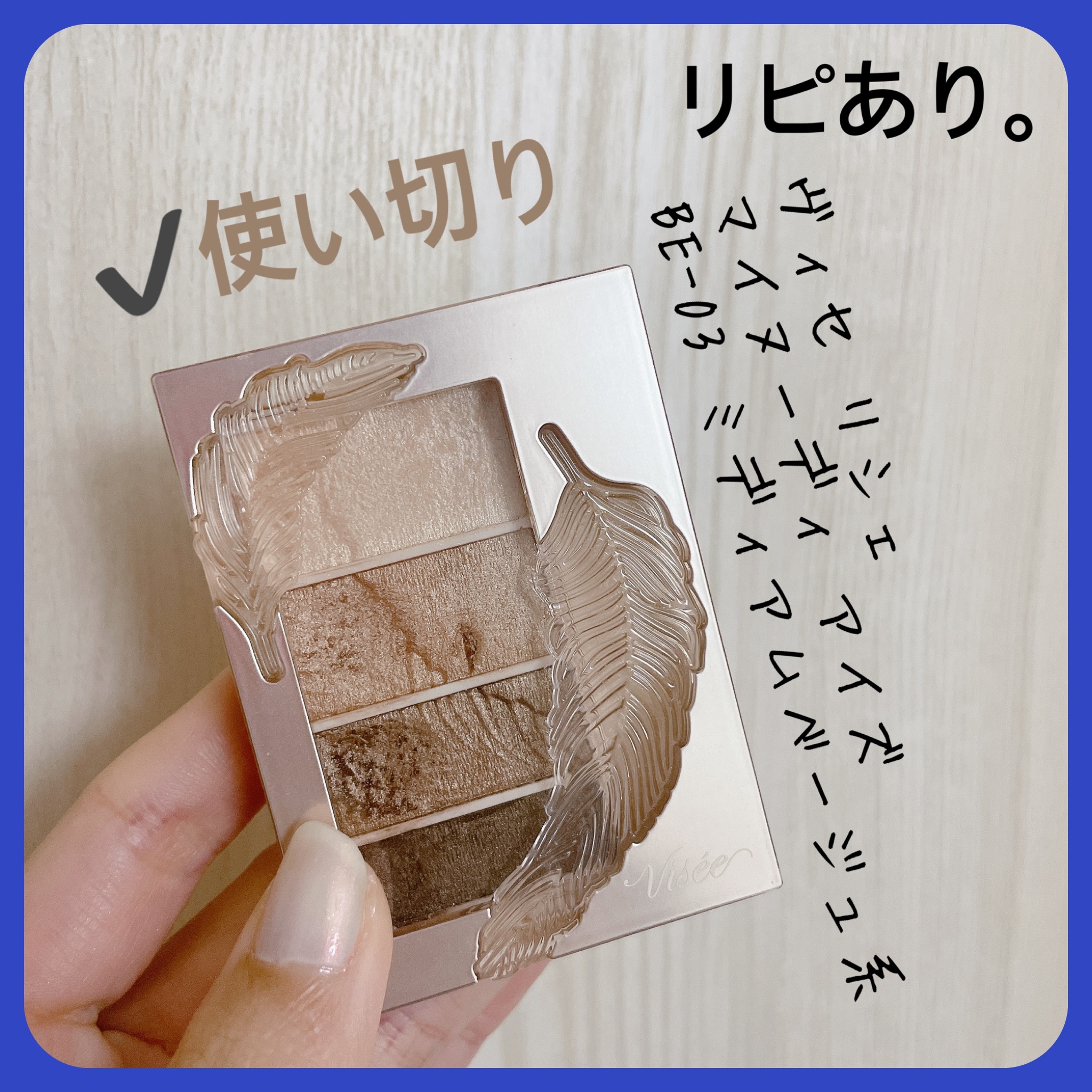 ViséeリシェマイヌーディアイズBE-3ミディアムベージュ系#底見えコスメ久しぶりの底見えコスメ‼️元々はBE-2を気に入ってずーっと使ってました!ご覧の通りほじくりまくってハイライトカラーと締め色がとうとう無くなっちゃいました🥲これが無いとなんか物足りない🤣もうすぐ廃盤になっちゃうのかamazonでめっちゃ割引してたので買い足しました!ミディアムカラーも馴染みよくグラデーションも簡単だしパーソナルカラー別に別れてますが全部使いやすい色味です!在庫があるうちにもう少し買い足そうかなぁ~🤭