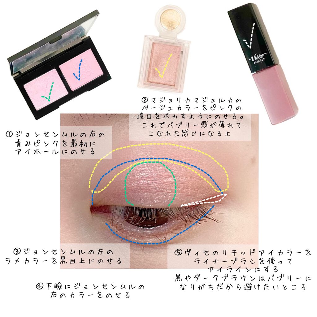 閲覧ありがとうございます☺︎*ピンクのアイシャドウを使ってバブリー感や子供っぽさがでないようにメイクしました。ポイントはアイラインの色と、ベージュシャドウでブレンディングをすることかなと思います。今回使ったジョンセンムルのピンクのシャドウは使...
