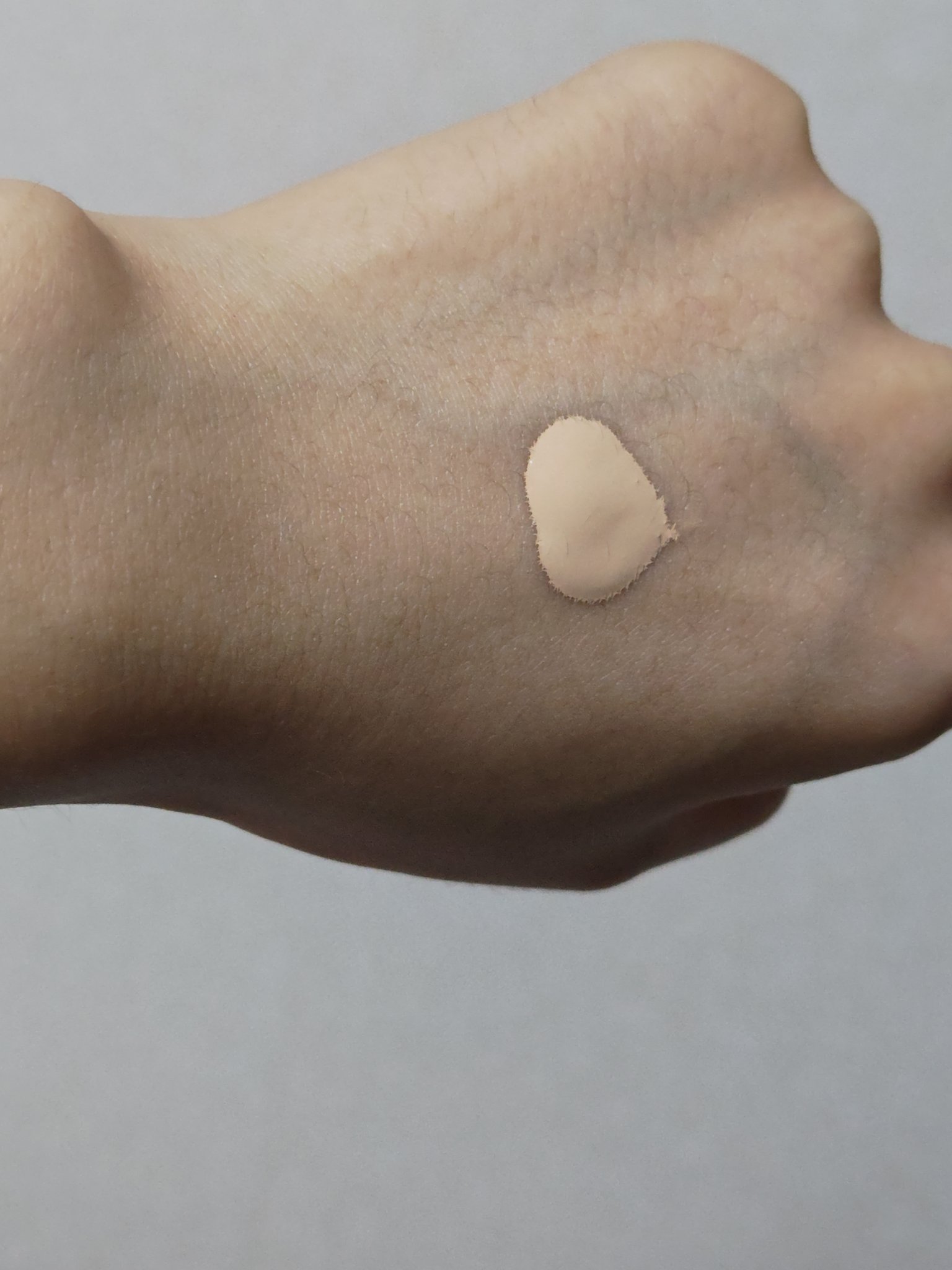 プチプラなのにこの見た目、可愛すぎません? キャップがゴールドとか高級感ありまくり♡ 乳液みたいなトロッと感 時間をおけばパウダーファンデみたいにサラッとした質感に変わりベタつき感はなくなりました。 使う色味や、肌の色に合わせて使うとスッピン感がでるかも🙆♀️ イエベで02のライトオークル使いましたがトーンアップした感じで厚塗り感はなかったです! マスクヨレはしにくかったです! マスクが1番触れやすく蒸れてくる部分は崩れやすいかもしれないです💦 ポルジョの下地と合わせましたがドロっと汚くヨレたりする訳ではなくパフなどでポンポンと軽くはたけば戻るくらいなので気にしすぎる必要なないかと思います✌️