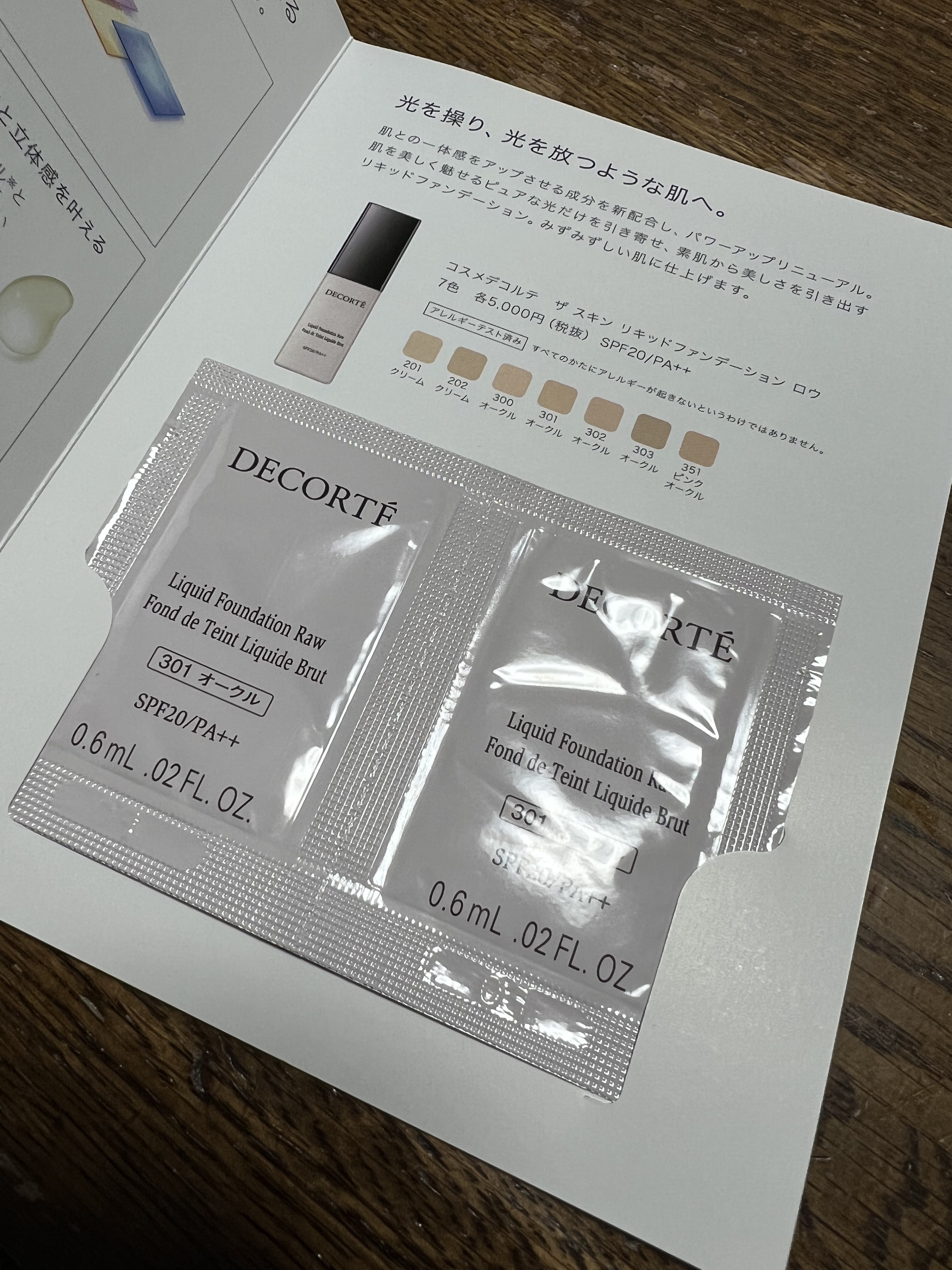 おはようございます😃✼••┈┈••✼••┈┈••✼••┈┈••✼••┈┈••✼DECORTÉザリキッドファンデーション301試供品✼••┈┈••✼••┈┈••✼••┈┈••✼••┈┈••✼たくさん試供品を頂いて使ってみました😊色も丁度良く、時...