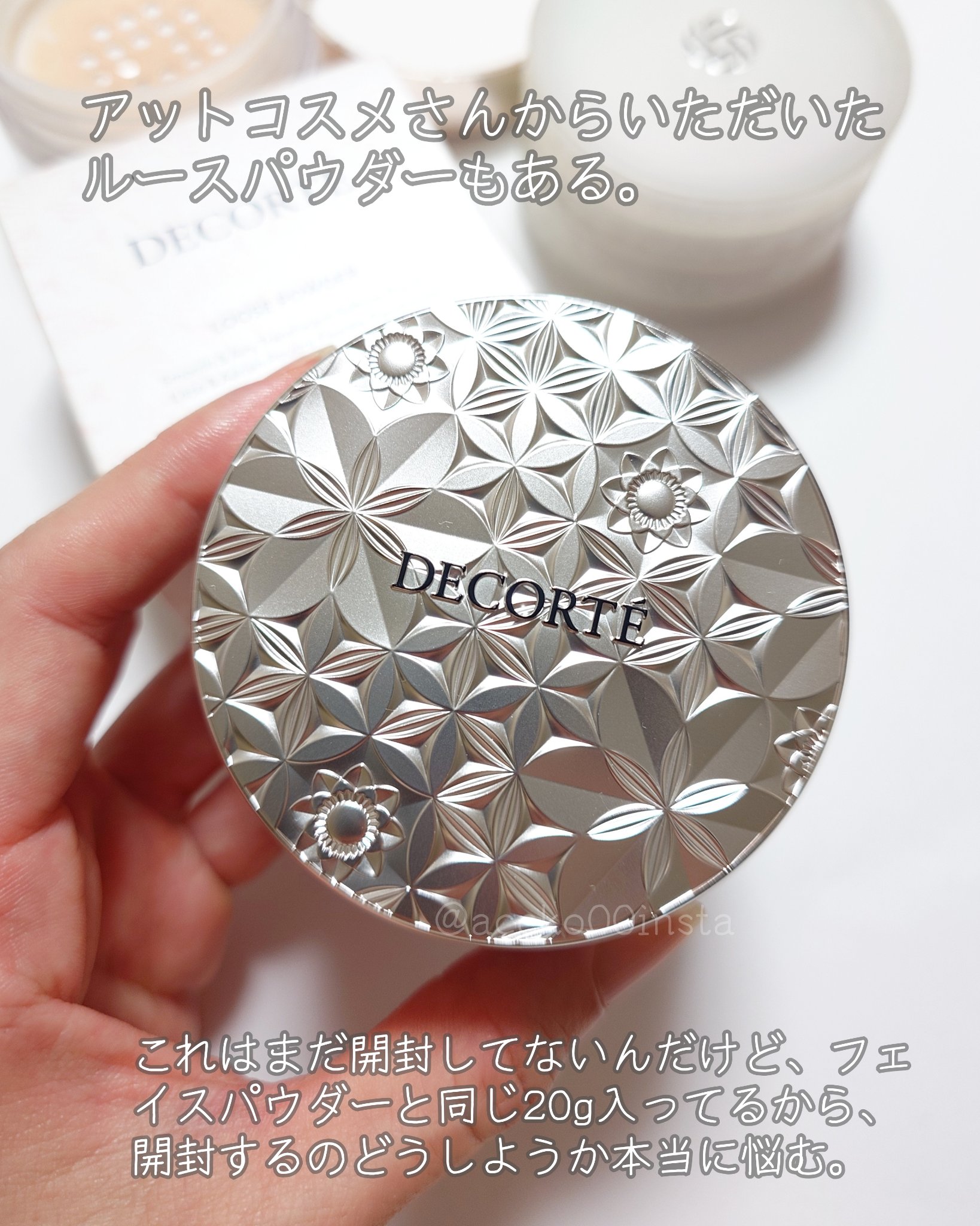 メイクが綺麗な友人のおすすめで✨パウダー迷子だったのですがついにDECORTÉに手を出しました…😍いやー…すごいです…いいものなだけあります…他のものは同じなのにパウダーだけでこんなに違うとは…パッと明るくなって鏡に映る自分がいつもより綺麗に…🤫笑DECORTÉさすがです♡✨マットになりすぎるわけでもなく自然なキラキラで肌が綺麗にみえる👀✨#デパコス#ツヤ肌#ルースパウダー