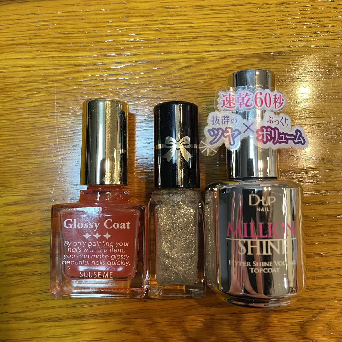 今回のセルフネイル!使用したのは*スキューズミーグロッシーコートピンクコート*DECORTÉAQMWメイクアップコフレVクリスマスコフレ2016AQMWネイルエナメルSV048fabulousparty*D-UPミリオンシャイントップコートです。まず、スキューズミーグロッシーコートピンクコートを3度塗りします。1,2,3度と重ねる度に雰囲気が変わる🌟3枚目を参考にして下さい☺️その後はDECORTÉAQMWメイクアップコフレVクリスマスコフレ2016AQMWネイルエナメルSV048fabulouspartyを指先に載せる。トントンって筆先でやったり、寝かせたり、いろんなやり方してます。笑最後にD-UPミリオンシャイントップコートを載せたらおしまい!!!