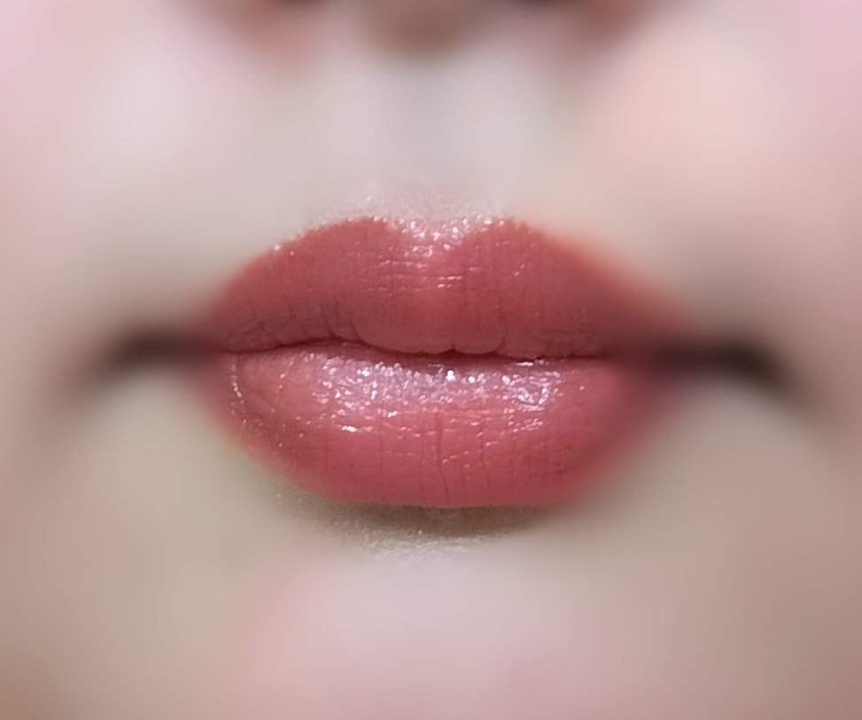 私の唇に塗ると少し朱色がかかった赤に見える。思ったよりも可愛らしい赤色。赤って色味によっては普段使いしにくかったりするけど、RD-225は透け感もあるし日常使いしやすい色だと思う。これは買って正解だった。『紹介した商品』・コフレドール ピュア...