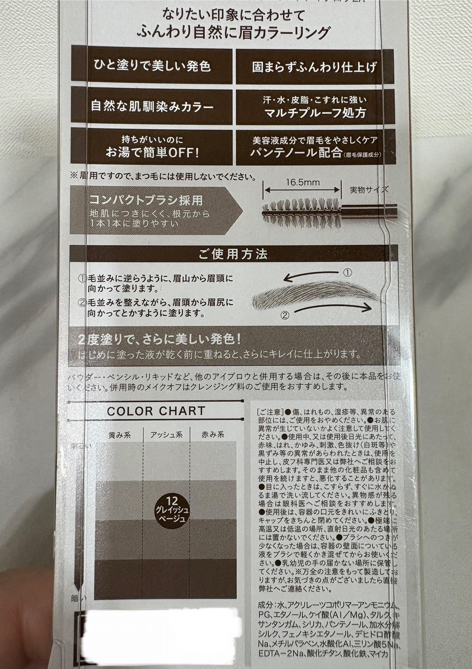 べたつかずパウダリーな使い心地で自然な仕上がりです。スクリューブラシ付で眉毛の流れを整えたり描いた部分をぼかすのに便利