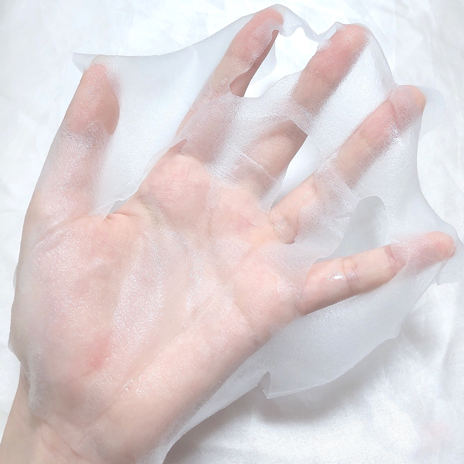 マスクはかなり薄く、少しザラつきを感じました。 美容液は ウォータータイプなだけあり、サラサラで袋から出した時ポタポタ垂れます。 とても保湿されたなと感じました。 スキンケアから数時間が経っても 顔に潤いがあり これにはびっくり!嬉しいです🥹 シートは結構小さく、鼻を完全に覆うことはなかったです。口元もかなりぴったり。 ピリピリなどの刺激も感じませんでした💮