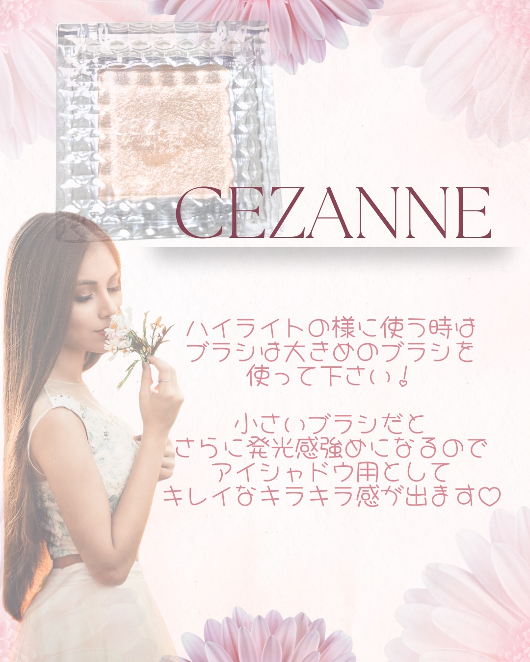 CEZANNEの中で1番リピ買いしている底見えコスメ!! アイシャドウのベースとしてはもちろん、私は涙袋やハイライトとしても使用しています👀✨ 質感はオイルが配合されている為かしっとりとしていてまぶたにもピタッと密着してくれるので粉飛びも無いです。 ラメ感はギラギラしすぎずに程よいツヤ感が出ます。 涙袋やハイライトとして使う際にもブラシを使うのがオススメです🖌 このブラシは韓国コスメのお店で購入したハイライト用のブラシです。 特にこだわりはないので、このような形のブラシ細く平べったい形のブラシがハイライト・涙袋に使いやすいと思います☺️ 本当に、めちゃくちゃ使い勝手が良くて万能でこのお値段なのでコスパが良すぎます🙏 今後もたくさん使用していきたいと思います☺️♪