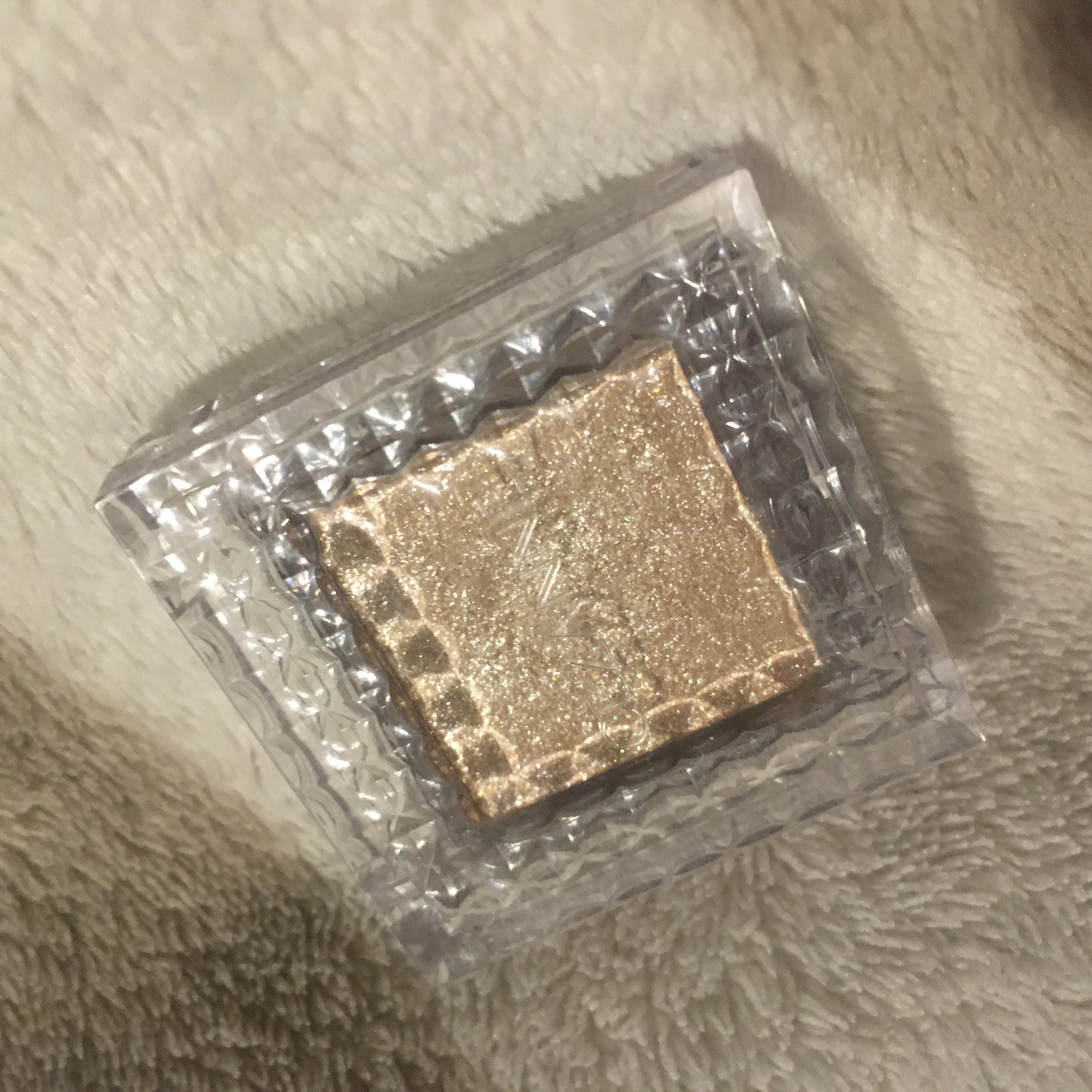 使いやすいベージュの単色ラメアイシャドウ。 普段のアイメイクにポイント使いすると、途端に華やかな目元に♡ ワンコイン以下の値段なのも嬉しい💰 密着度は高くなく、擦ると崩れちゃうので注意が必要。