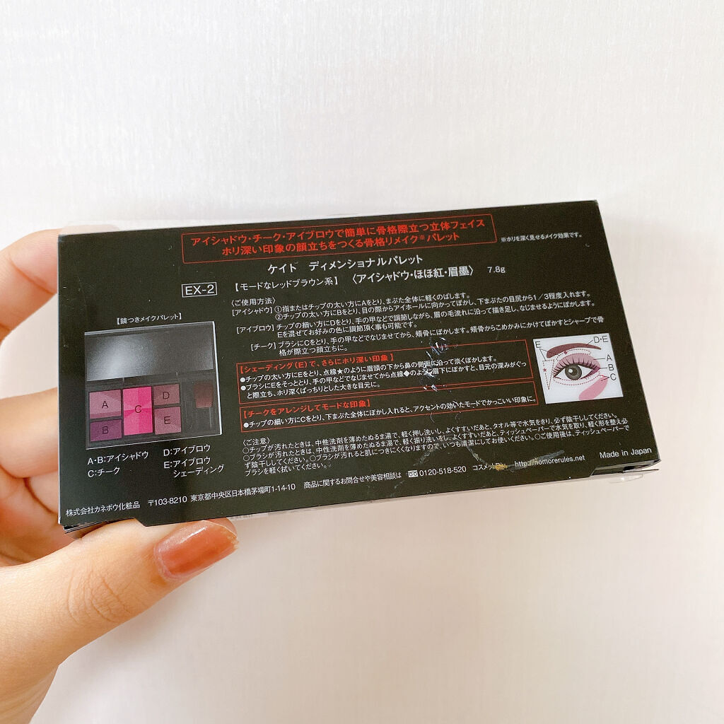 KATEディメンショナルパレットEX-1オレンジブラウン系EX-2レッドブラウン系(左EX-2右EX-1)11月1日発売のKATEのパレットアイシャドウチークアイブロウシェーディングが1枚で使えます♡実際の色味は1枚目の画像が近いと思います♡左上A左下Bアイシャドウ真ん中Cチークカラー右上D右下Eアイブロウパウダー(シェーディング)(3枚目)2枚目単色塗ってみて画像です(><)左からEX-2のABCDEEX-1ABCDEアイシャドウがとにかくキラキラ!大粒のラメがキラッキラしててとても綺麗♡♡チークにも細かいラメが入ってます。Eの色はどちらも薄づき。メイクのときに化粧品をバラバラ出さなくて時短になるし持ち物もコンパクトになるので個人的にゲット出来てとても満足してます♡