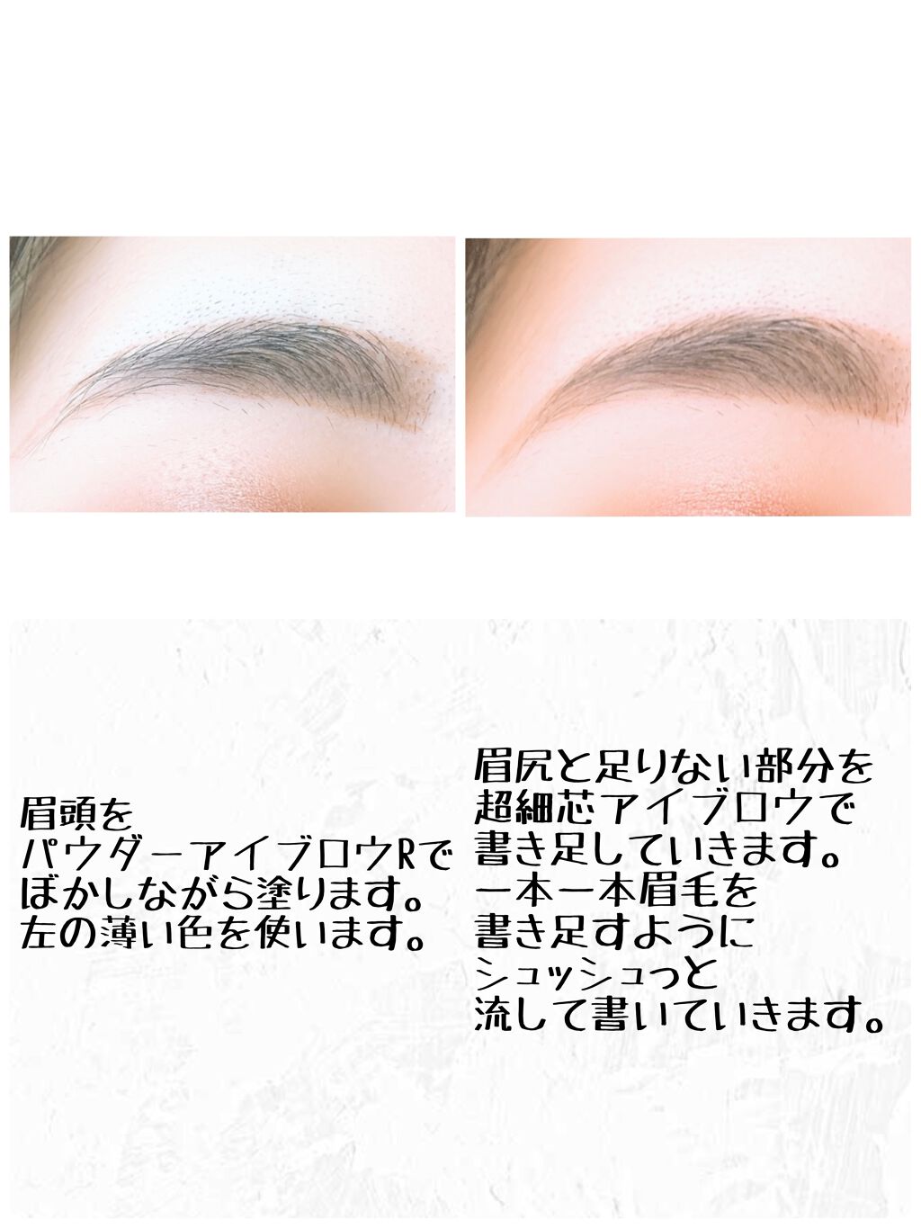 外袋に淡パウダーと濃パウダーを使う場所がそれぞれ書かれていて分かりやすかった! 付属のチップはベージュの太い方はふわふわ、白くて先がめっちゃ細い方は硬めになっています♪ 1本で違う太さのが2種類ついてるのはやっぱり使いやすい◎ 実際に腕に塗ってスウォッチしてみたけど、特に濃い方の色とか明るすぎない色で、自分の髪色と合わせても違和感なくてよかった! 擦っても色落ちしないから密着力もあるみたい!