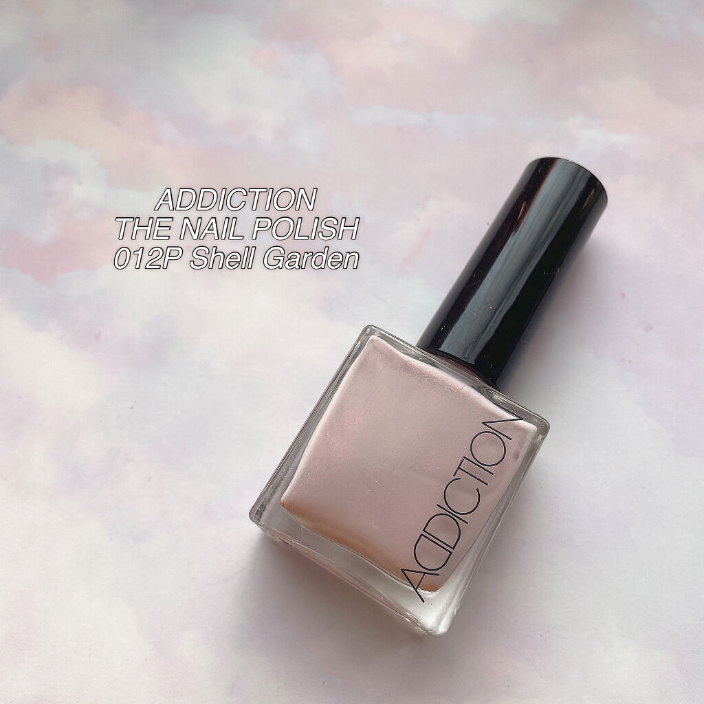 ADDICTION 012P シェルガーデン白みのあるピンクベージュに赤パールがぎっしり入っています。(めちゃくちゃかわいい)使い勝手が良い色ですが、プチプラにはない一癖あるカラーで気に入っています。ADDICTIONのネイルはそこまで速乾性...