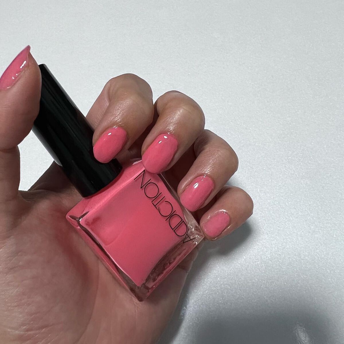 #ラブミートゥルー.#アディクション#ザネイルポリッシュ#lovemetrue.なにより名前が可愛い。名前に惹かれて買ったネイル。夏にぴったりのキャンディーピンクなんだけどこれは春も冬も可愛いはず!8月までたくさん塗って、もこもこニットの時期...