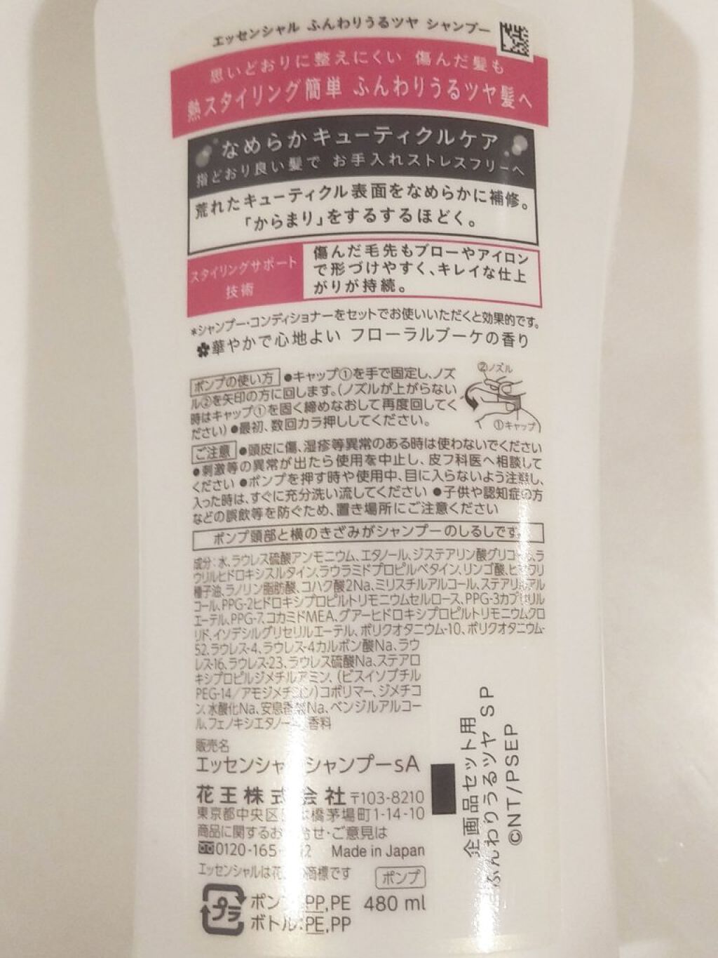 エッセンシャル ふんわりうるツヤシャンプー/コンディショナー シャンプーポンプ480ml ¥764〜可もなく不可もなく高いのだと違うのかな#至高のツヤ髪レシピ