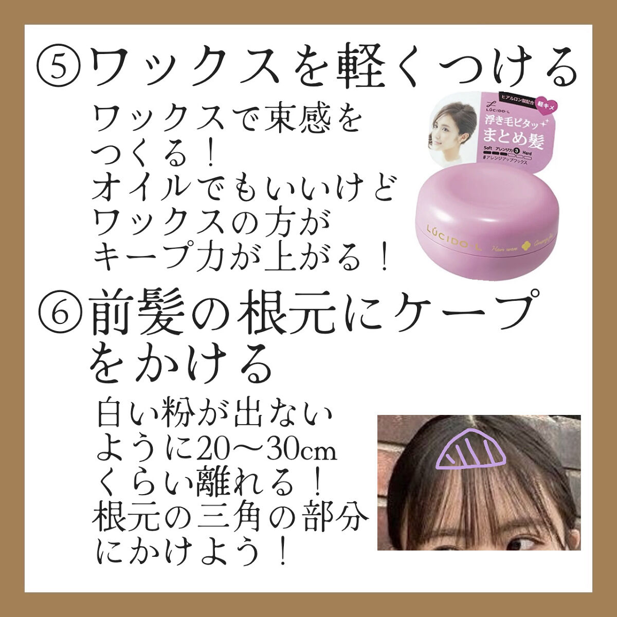 私は3を主に使っているんですけど、ミニバージョンの5を使ったことがあって、5だとカチカチになりすぎて白い粉がめちゃくちゃ出てきてしまうので、個人的には3がちょうどいいと思います! どんなに風が来ても前髪が崩れない! 触ったりすると白い粉が出てきてしまう💦 風とかで前髪を崩したくない人