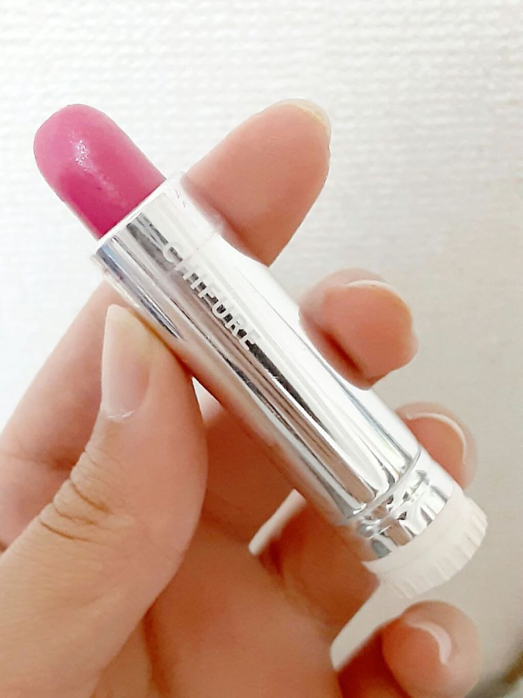ちふれ口紅345番、パープル系パールです😌ブルベ冬の方によく似合うみたいですが綺麗な青みピンクだったので購入してみました☆つけすぎるとすごく発色しますが一度塗りくらいでいい感じの色に✨つけ心地も潤ってすごく良いです😍何よりお安くてそこが嬉しい...