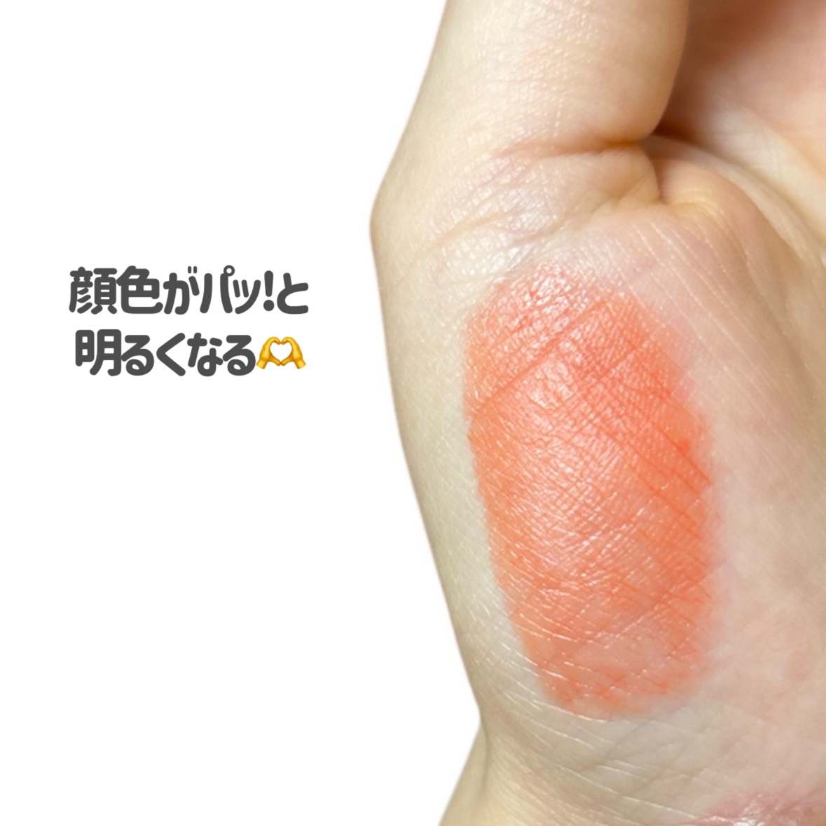 しっとり、ふっくらとした女性らしい口もとを演出 オレンジ好きな私からすると もうちょっとオレンジ感欲しかったけど これはこれで可愛い🫶 このリップはティントじゃないけど ティッシュオフして塗ってを繰り返したら 結構色が定着する👏🧡