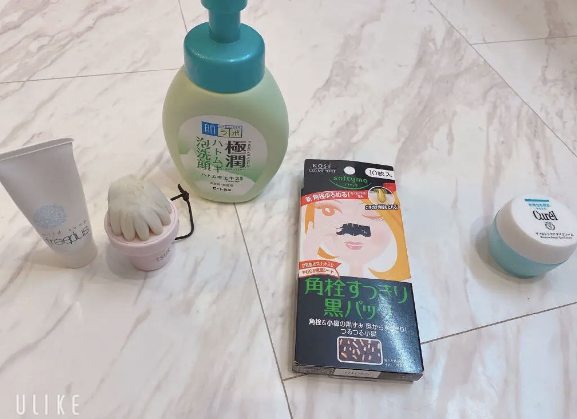 イチゴ鼻にサヨウナラ🍓👋/鼻の毛穴の黒ずみが気になる方はいませんか?目立って嫌ですよね💦私も一時期気になり出したらそこしか目がいかなくなり色々な物を試しました💦効果がよく分からないものもありました。これを続けたら脱イチゴ鼻になったのは□ツルリ全顔つるり筆マイルド ¥1,320□ペリカン石鹸ドット・ウォッシー洗顔石鹸¥550□角栓すっきり黒パック ¥324この3点セット♡︎その後必ず毛穴を閉めてから保湿。なので約¥2,200で揃えられます!しかもツルリ筆とペリカン石鹸はかなり長い間使えると思います❁︎そう考えるとかなりコスパが良い❤️ドット・ウォッシー洗顔石鹸は必ず泡立てネットでもこもこ泡を作ってから!もこもこ泡を鼻に乗せツルリで“チョンチョンチョン”と毛穴に毛先から汚れを書き出す感じを時々したりクルクルしてます。これでかなり汚れが取れるのが目に見えてわかります!泡立てるのが面倒な時は泡洗顔でその泡を使ってやってます✨これなら楽々♥︎︎あとはフリープラスの洗顔をネットで泡立てたりしてました!お湯でゆすいでから鼻パック!時間がある時はスチームで毛穴を開いてから鼻パックをしてます✨10〜15分おいたらゆっくり剥がしていきます!ニュルニュル角栓がでてきます!気持ちいいー!大きめなのが取れた時は毛穴がパックリ!穴空いているのが分かります!楽しいwその後、冷たい水で洗い冷やして毛穴を“キュッ”と引き締めます!その後しっかり保湿‼️鼻パックは最低3日おいてからやってください!鼻パックをするとかなり綺麗になるのでオススメ!