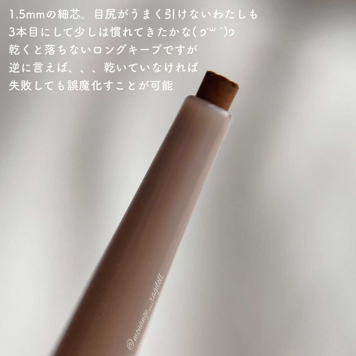 ムラ付きせず一度塗りで高濃度な発色! 柔らかな発色が好みだったので程よい抜け感のあるカラーが発売されてとても嬉しいです✨ 乾くと落ちないロングキープですが逆に言えば、、、乾いていなければ失敗しても誤魔化すことが可能·͜·✧︎ 指で触れた時のふかふかした感触が堪らん︎のです🫰🏻💗