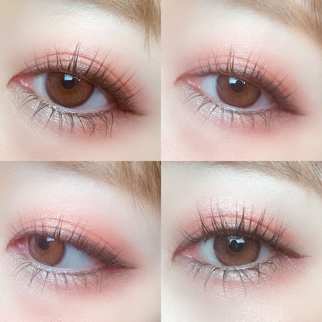 べースに左上のツヤ感のあるカラーを置いてグラデーションを作っていきます。 瞳の色になじむとけこみ効果で目もとの立体感を活かして自然に大きく見せてくれるアイシャドウなんです。 瞳の色に同化するブラウニッシュマッチ効果で目もとを自然に明るく際立てながら、乾燥しがちな目もとにもなめらかに密着。 重ねてもくすみのない発色が長時間持続します。 色持ちも発色も良いですし、左下のホワイトカラーがキラキラしていてとてもお気に入りです◎