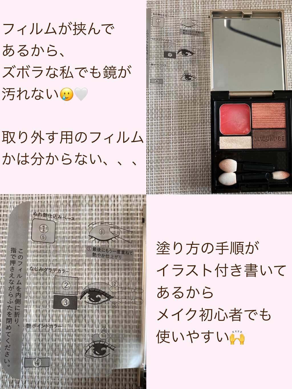 白石麻衣さんのCMがとても美しい😍あんな美人にはなれなくてもメイクの真似はしたい!!と思い即購入しました♥️秋にぴったりな色が5パターン!!私が選んだのは…🎀RD312ショコラフランボワーズ赤系にしました♡♡フィルムに描いてある通りに使用して...